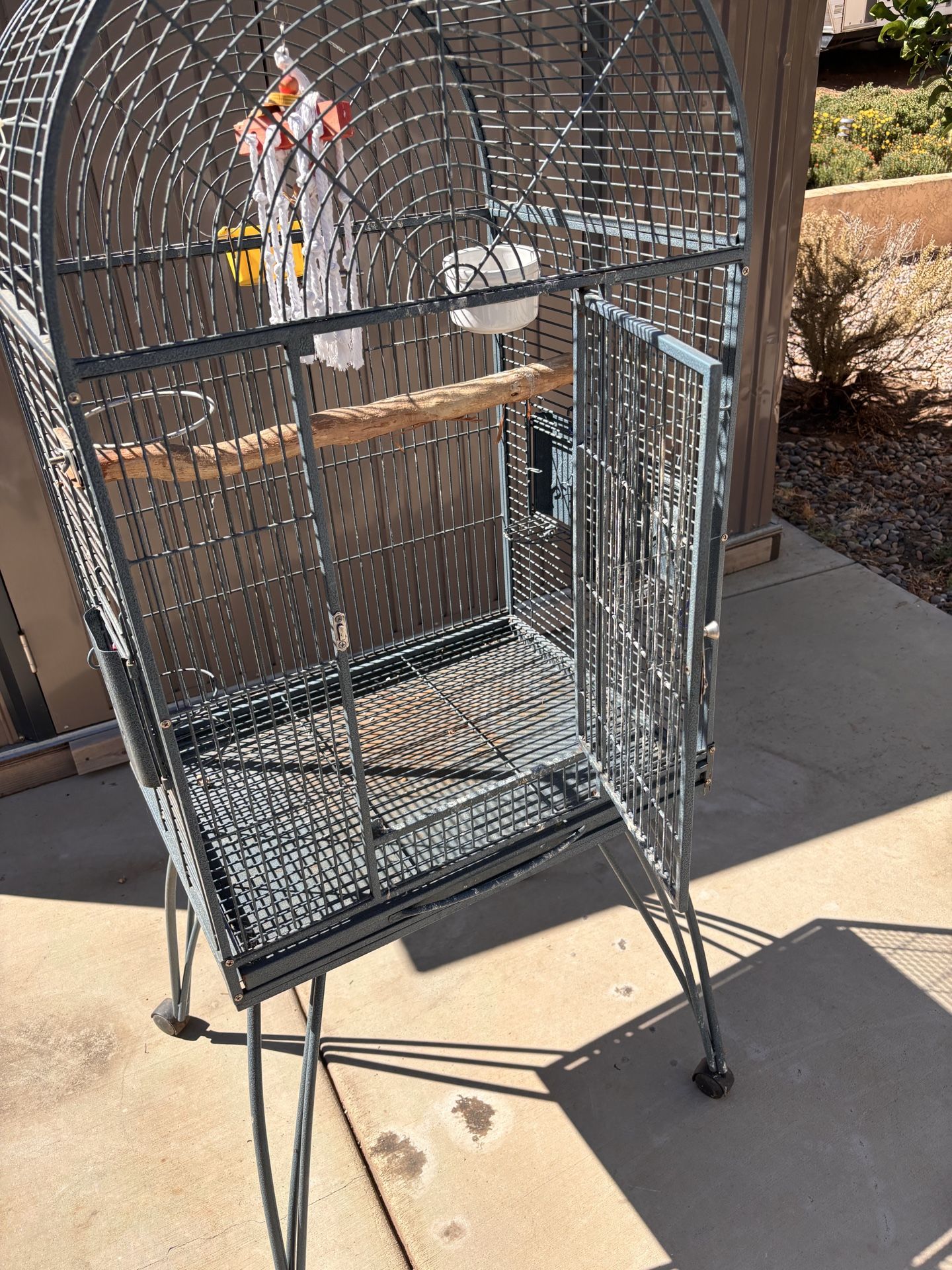 The cage height is 5‘5“ The width it’s gonna be 1‘ x 8“ The link is gonna be 2‘2“ Very good condition like new just don’t have birds anymore. I’d like to get rid of it
