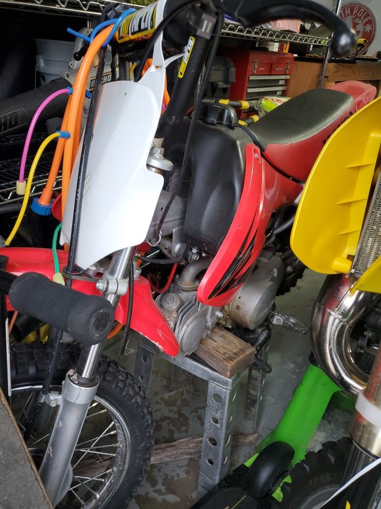 crf 70 with a pirahana 125 motor. fun lil bike with a clutch. pro taper bars. new rear tire. open for trades, see if I like what you got.