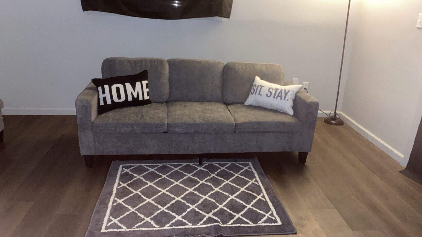Small sectional good for a small decor room or small office space. Practically brand new ,only used for a few months. Paid $300 only asking half that.