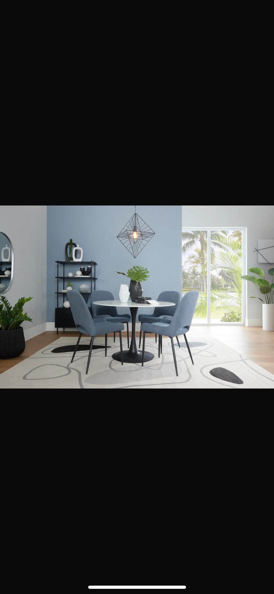 4 grey chairs Marble smooth round table (brela table from city furniture) Stored in a Storage unit Looks similar to the first picture but with grey chairs and one round table marble Comes from smoke and pet free home Barely used