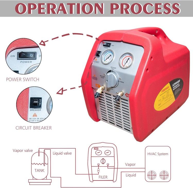 Oil-less Portable Refrigerant Recovery Machine for Both Liquid and Vapor Refrigerant (3/4HP Single Cylinder)