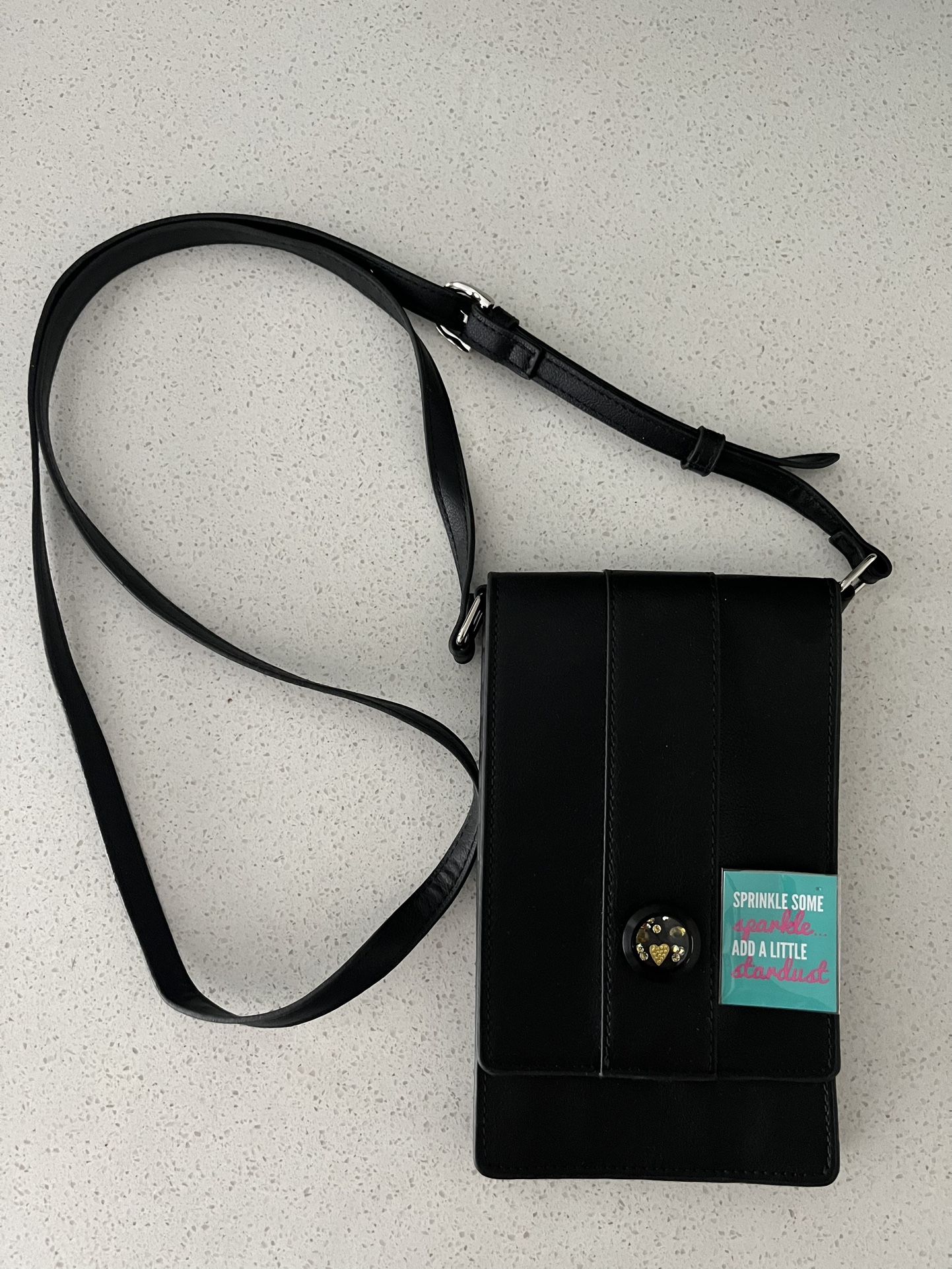 Origami Owl Black Cross Body Bag- Heart Themed
