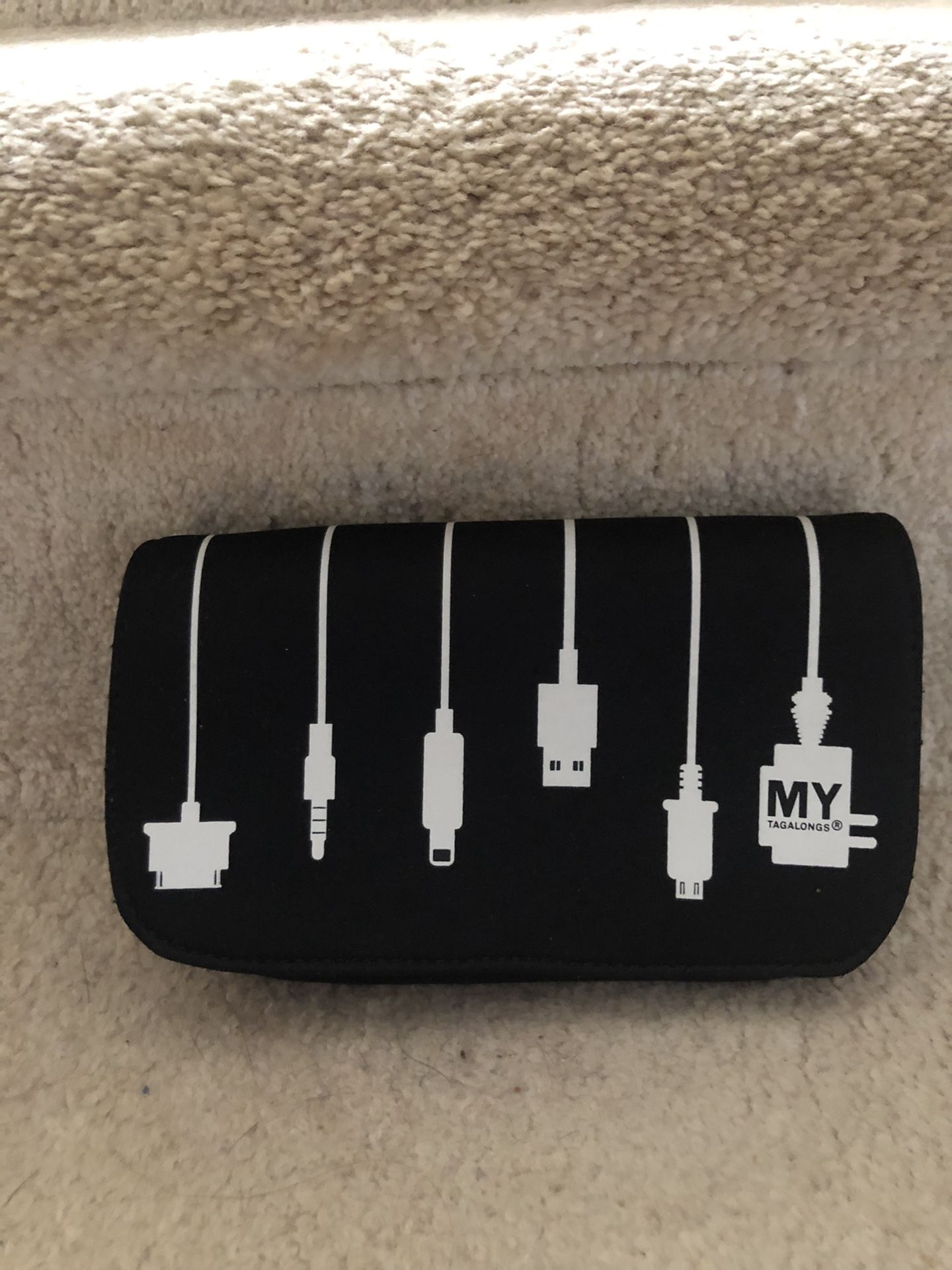 Black Velcro closure electronics or cord storage. Great for travel or home organization.