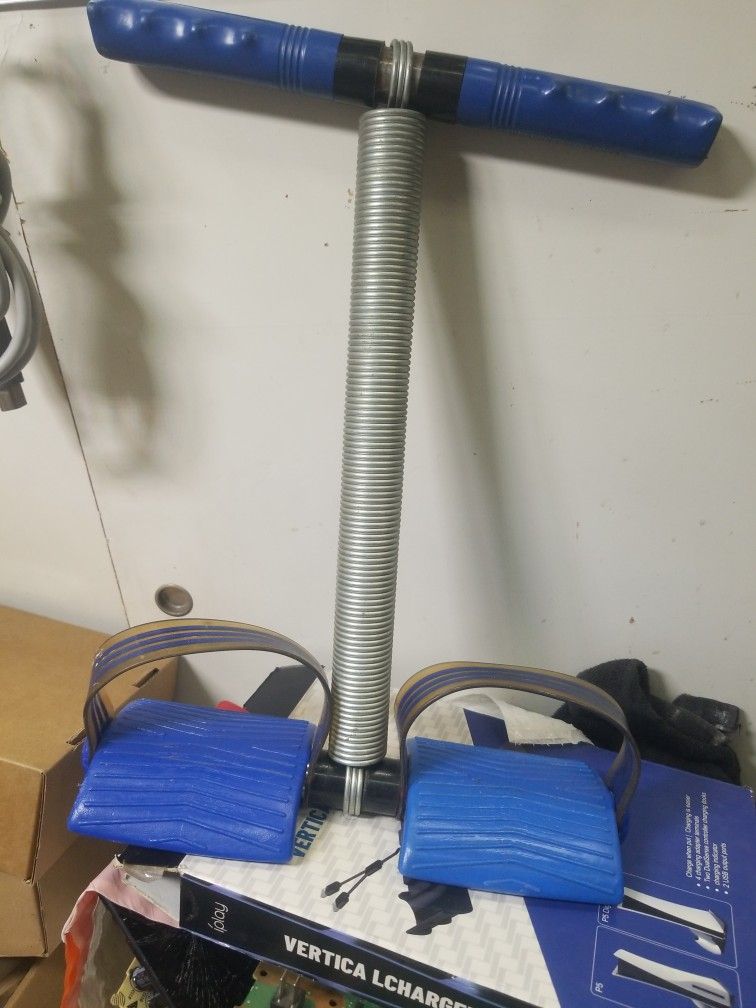 Vintage Spring Action Rowing Ab Exerciser Resistance Coil Taiwan Blue.