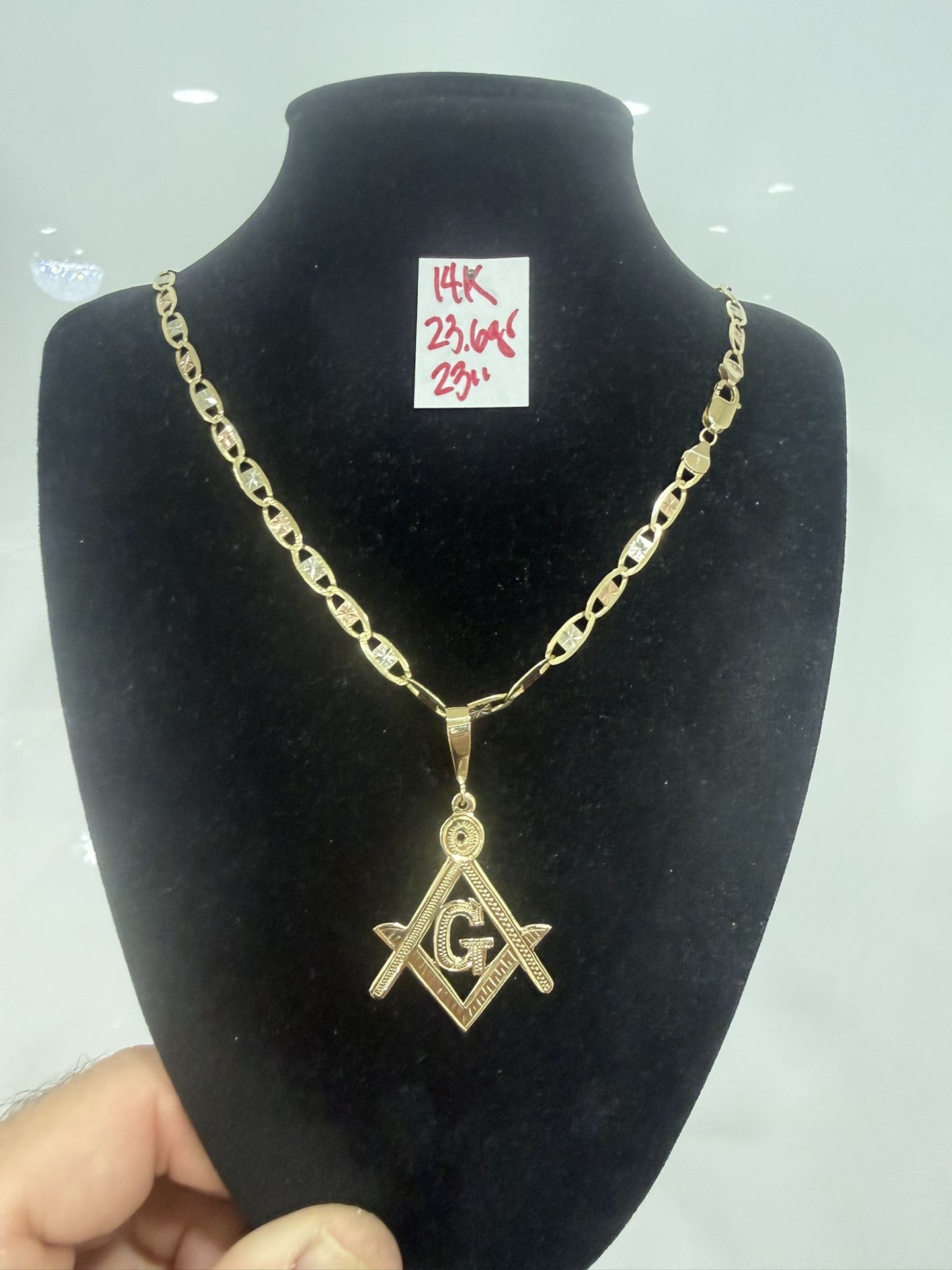 14K Solid Gold Chain and Pendant 23.6Gr 23 Inches Long