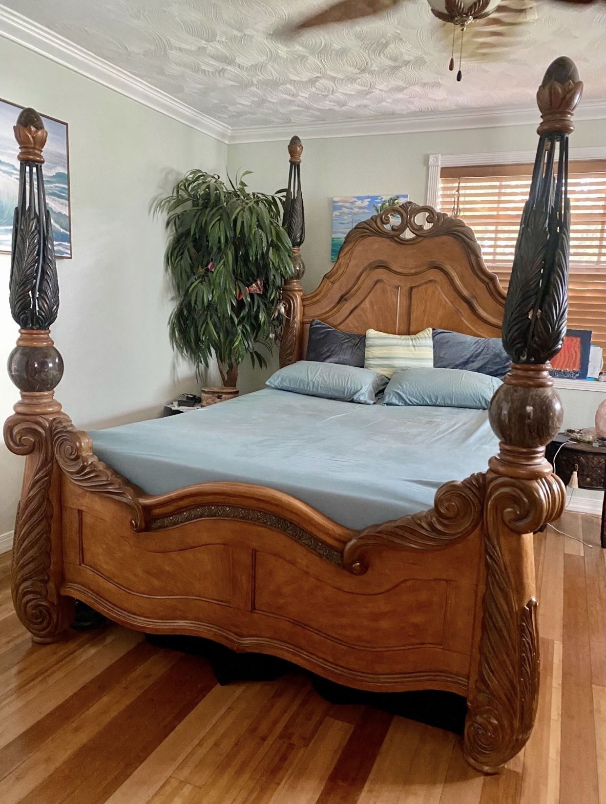 Set is in great condition noting is brown or damage, set include Bedframe dresser with mirror 2 nightstands and armoire