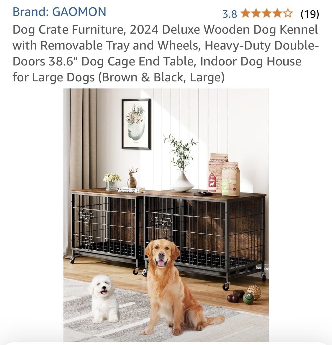 This is a really nice piece of furniture for a large dog. I bought it last week for over $150 and put it together. It is a great size. The only problem is the door is not big enough for my dog because she’s built like a small moose. Any other large dog would fit in it my dog just has a very big butt area. She’s a very large Bernedoodle. I may be able to deliver if not far away. Size is in photo