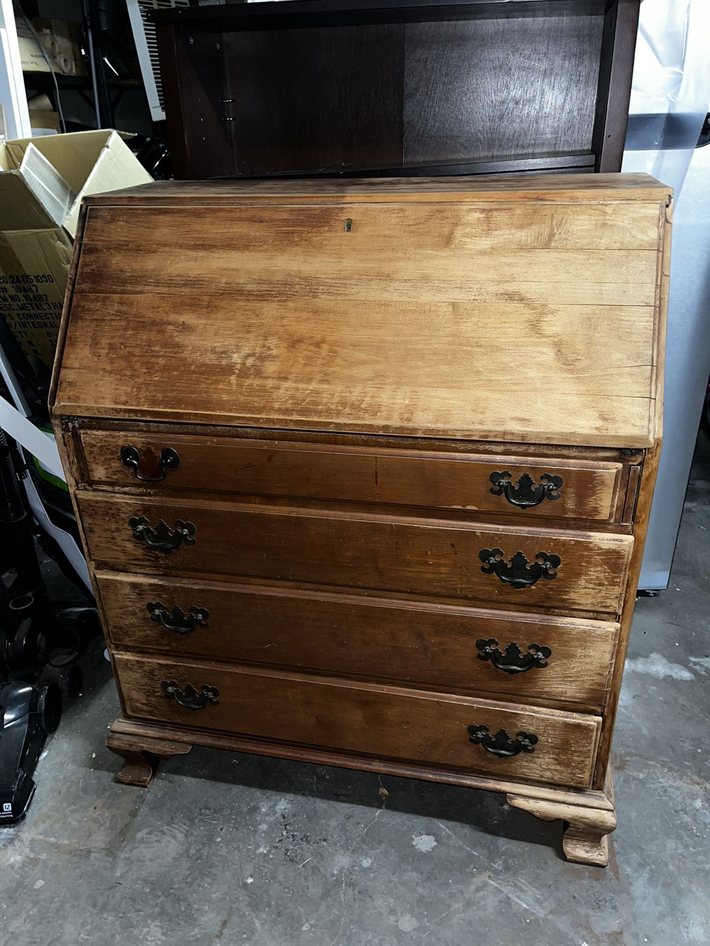 Unique, solid wood dresser desk vintage. I was in middle of completely sanding it down this desk it is ready for any color stain or paint of your desire. I have too many projects did not have time to finish beautiful peace 34 x 18 x 41 first come first serve pick up only