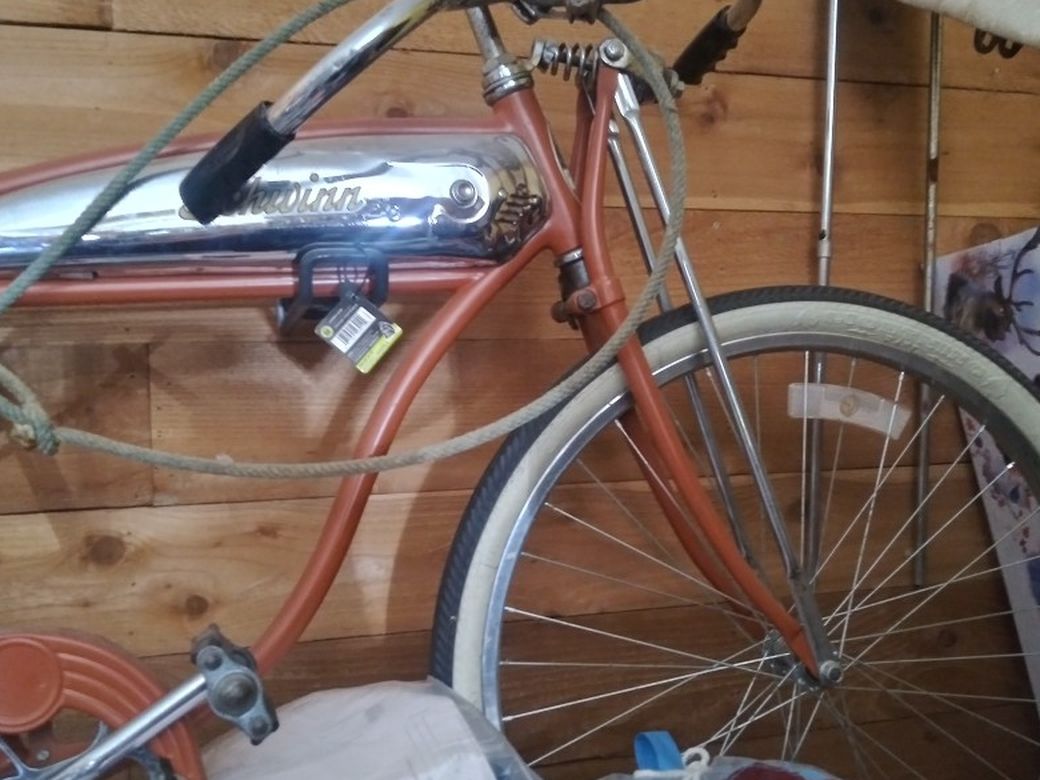 Schwinn Rat rod straight bar is a complete n rides good turns lots of heads jus needs to go to some who rides it built about 10 yrs ago is post war jus 8n parts alone well over 1k .message me if u got questions or offer