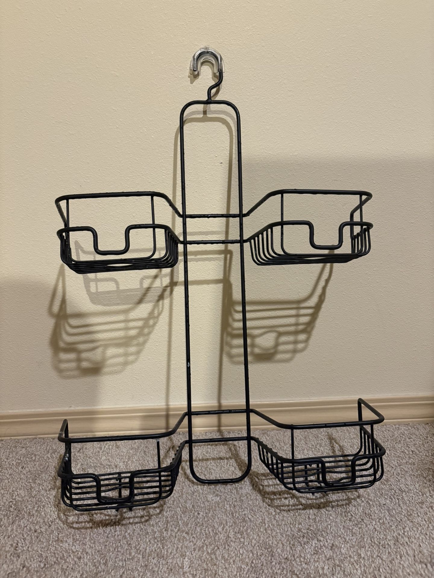 -four pockets -color: black - rubber attachment to the handle for attaching firmly to the shower handle