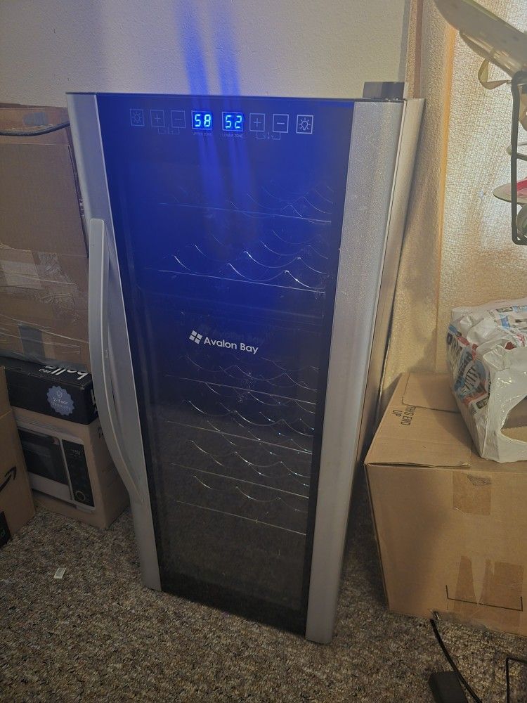 Avalon Bay Wine Cooler, fits 21 bottles. Dual temperature control for top and bottom portion. Inside lights can be turned on or off. Simple to operate. Size is roughly 31.5" H x 13.5" W x 19.5 D Retails ~$400 Pickup Southside La Crosse near Gunderson Cash or Venmo accepted.