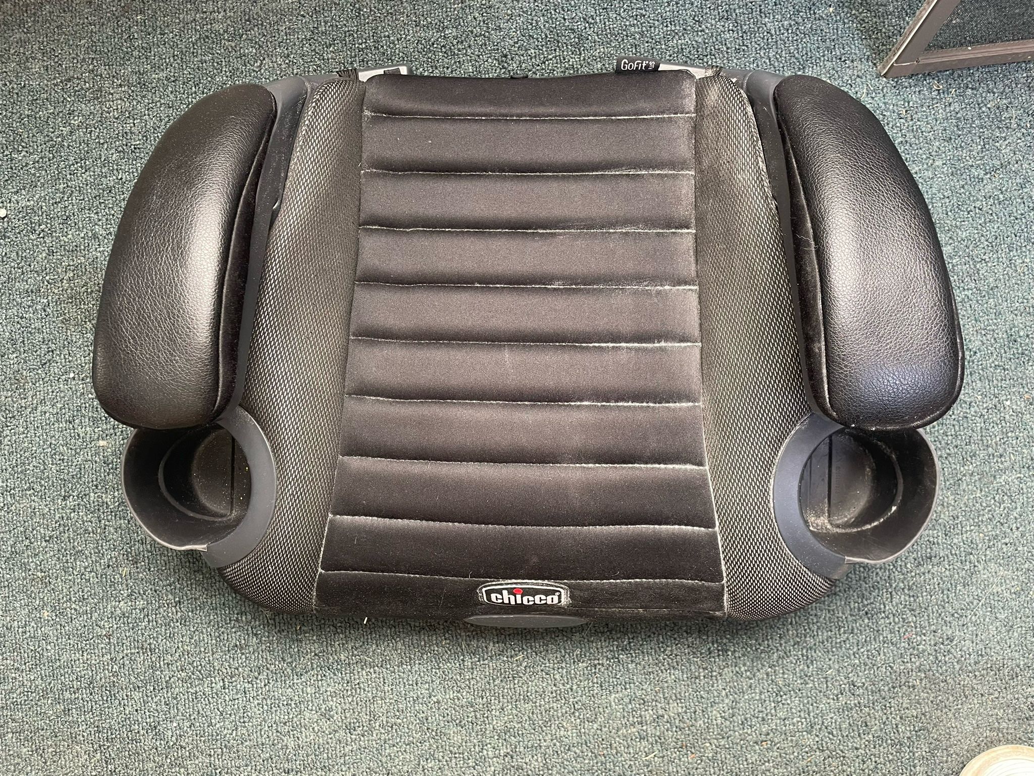 Backless booster for children hide-away cup holders Easy to Clean: Machine-washable seat pad Comfort: Height-adjustable armrests for your child's comfort