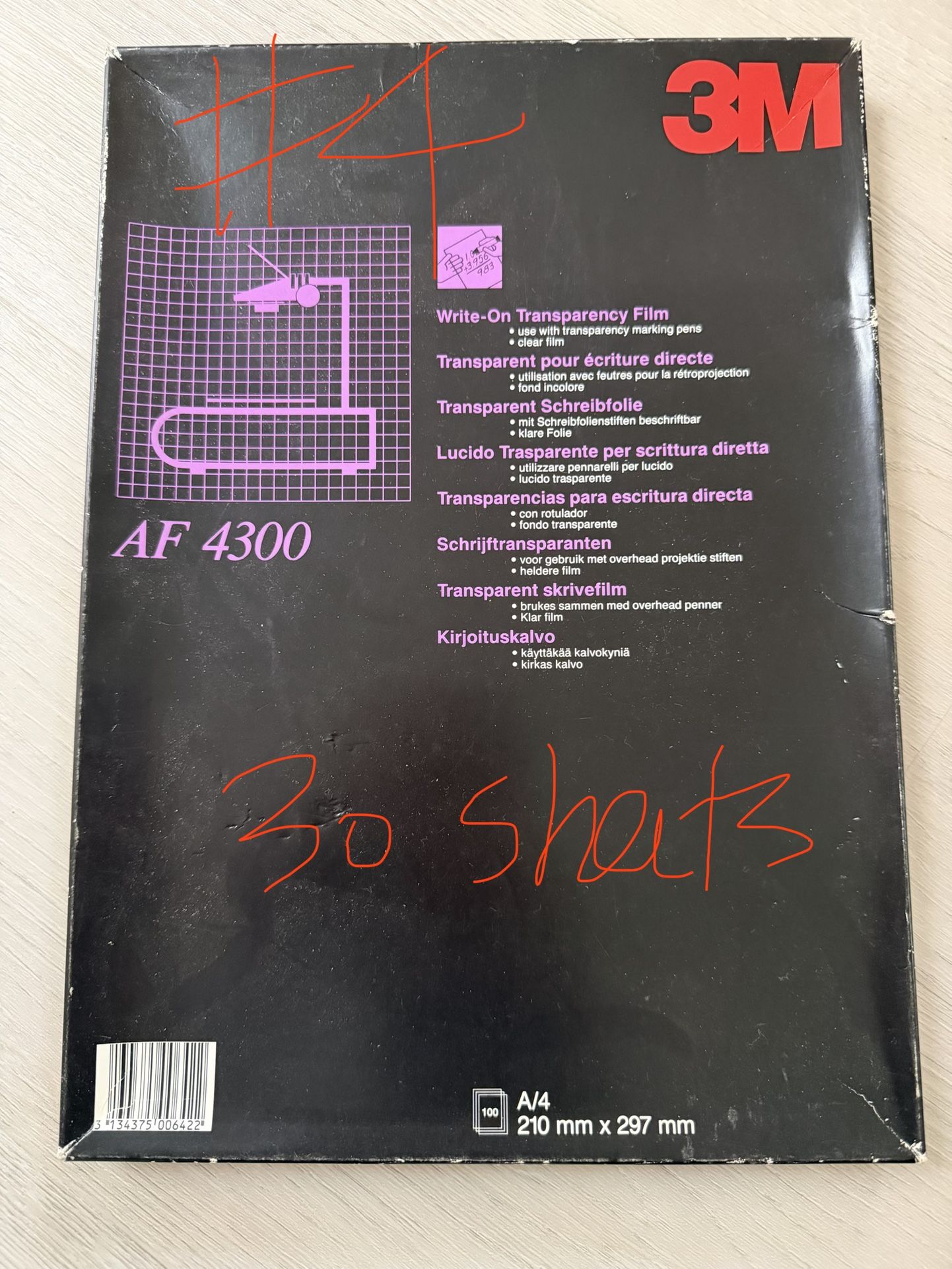 3M AF 4300 Write-On Transparency Film. 30 sheets-New