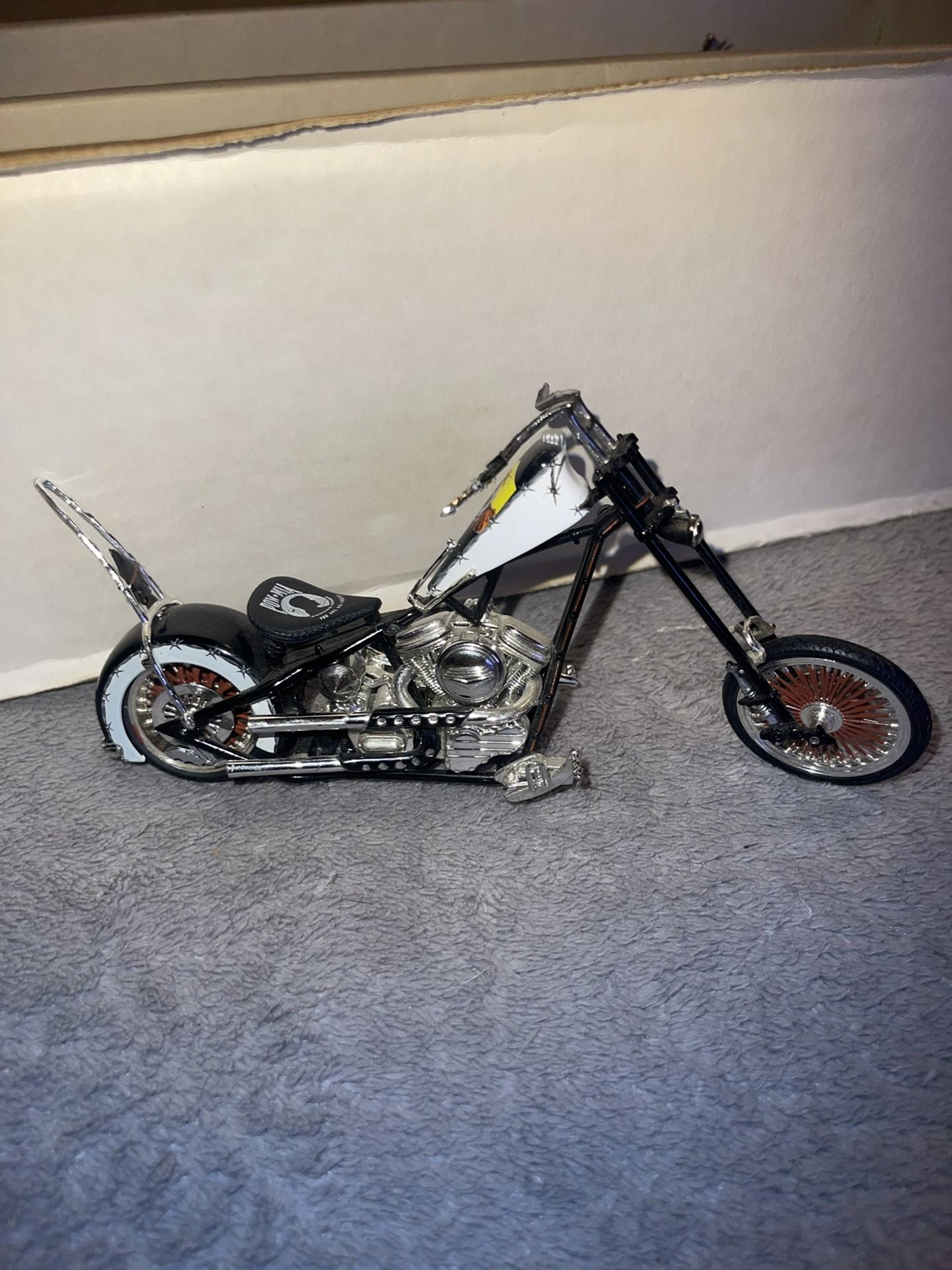 Mia-Pow commemorative motorcycle unfortunately it’s missing a handlebar but other than that it’s in great condition and I am asking for $60 OBO Approximately 8 inches long