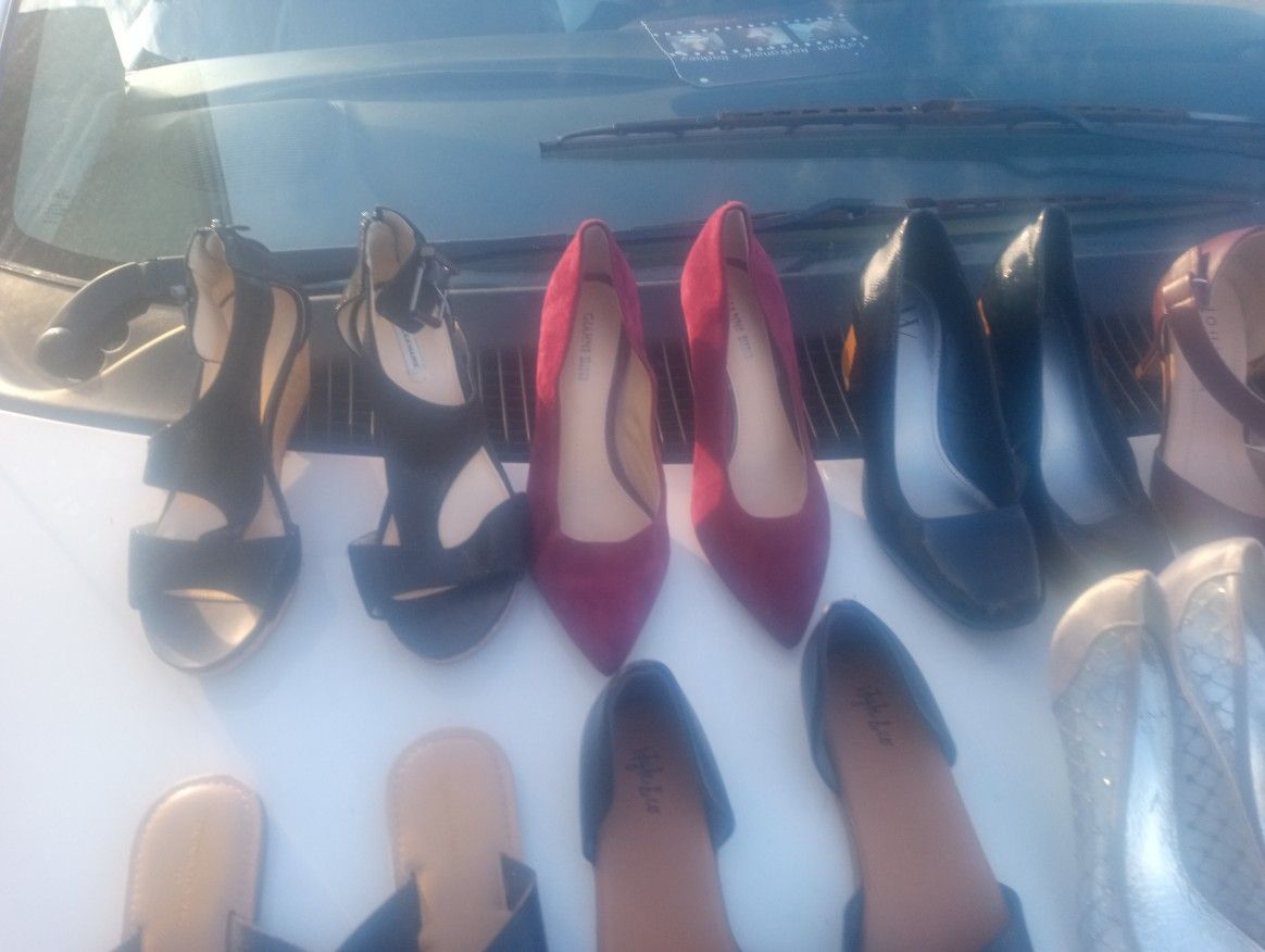 In good nice clean used condition women and girls dress an casual shoes sizes 7, 7 1/2, 8, 8 1/2.,selling all 16 pair for $80.00.