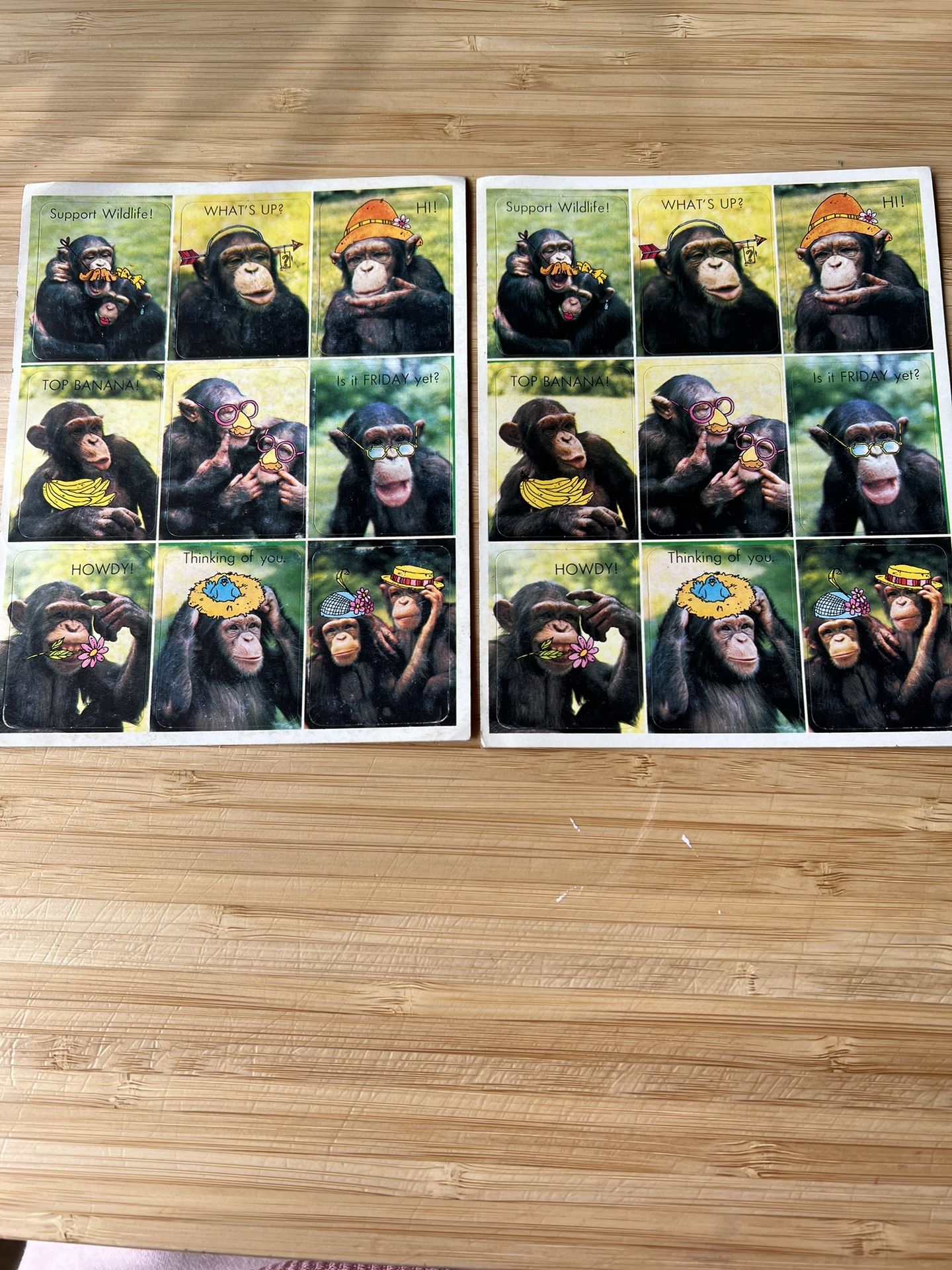Vintage Gibson Sticker Sheet Funny Chimpanzees Very Cute Photographic