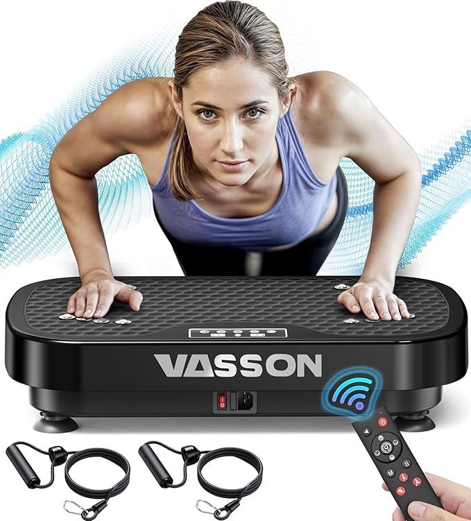 Brand new in box Vibration Plate Exercise Machine, Whole Body Power Vibrating Shake Platform Workout for Lymphatic Drainage, Vibrate Waver Fitness Full Body Shaking Board for Home Fitness, Weight Loss, Women 【Build Body&Strengthen Your Power】the vibration plate exercise machine, just 10 minutes a day, helps you sculpt your ideal body! Specially designed whole body vibration plate & foot acupressure plate, contraction and activation muscle, burn calories and weight loss rapidly, create a unique fitness plan to achieve your fitness goals swiftly 【More Body Flexibility, Less Relieve Pain】Choose different postures combined with the vibration plate to accelerate metabolism, promote blood circulation and vibration plate for lymphatic drainage, protect nerves and bones, and relieve chronic pain. Combined with daily exercise, it can strengthen the body's core and leg, arm, and back muscles, improve flexibility, and provide a greater range of motion 【Rich Functions and Easy to Use】Adjustable vibration speed, including manual(1-99 adjustable vibration speeds) and automatic modes(9 different frequency modes). Offering a variety of exercise modes, it allows you to try different vibration exercises. It comes with 2 resistance workout bands, so you can exercise your upper and lower body at the same time 【Convenient to Operation, Easy to Storage】Vasson vibrating plate exercise machine has two modes of operation, use the included remote control or via the LED dashboard screen. LED display shows time, and speed, making your exercise for a clear view of your workout. Compact size can be used anywhere & easy to carry and store