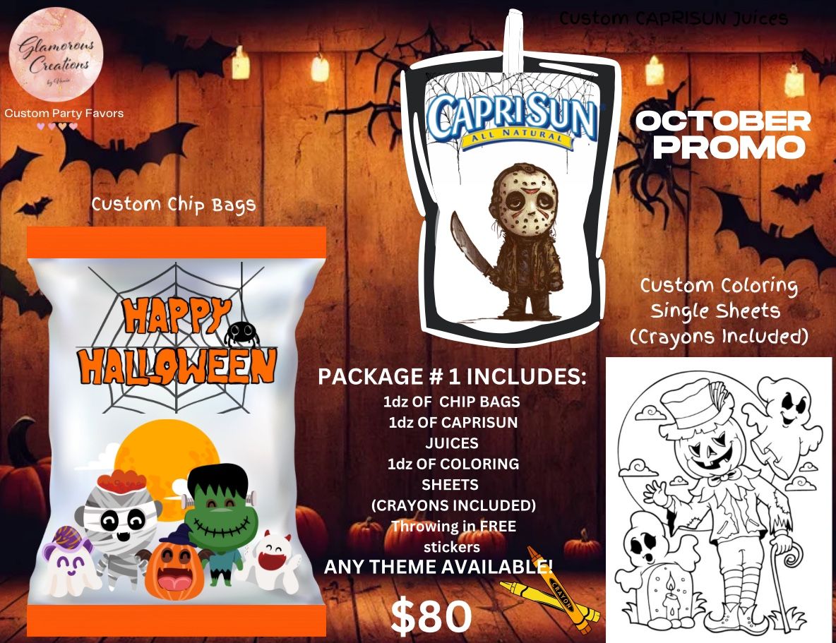 Custom Chip bags ,CapriSuns , Coloring Sheets
