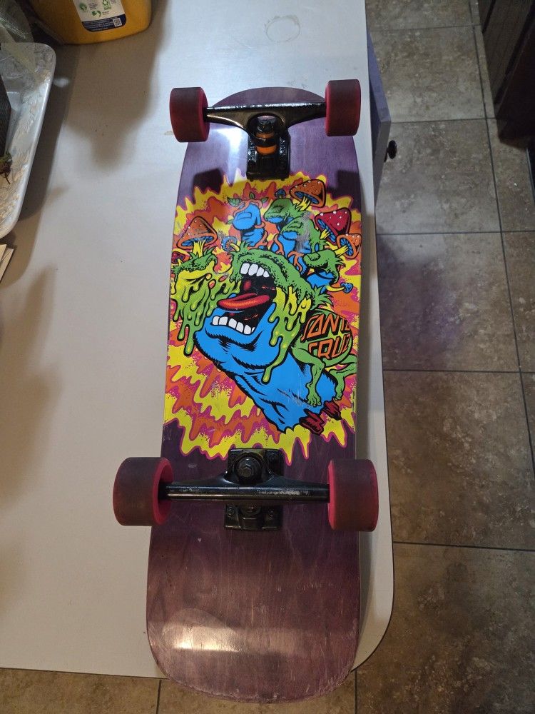 Skate board Santa Cruz deck Screaming Hand lightly used complete with Krux trucks slimeball wheels nice cruiser deck great for street park transportation college campus cruiser or mancave I also have other Skateboards available just click on my picture to view thanx $65