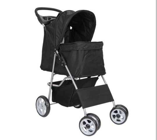 Foldable Dog Stroller Pet Travel Carriage Detachable Carrier Cart - Black
