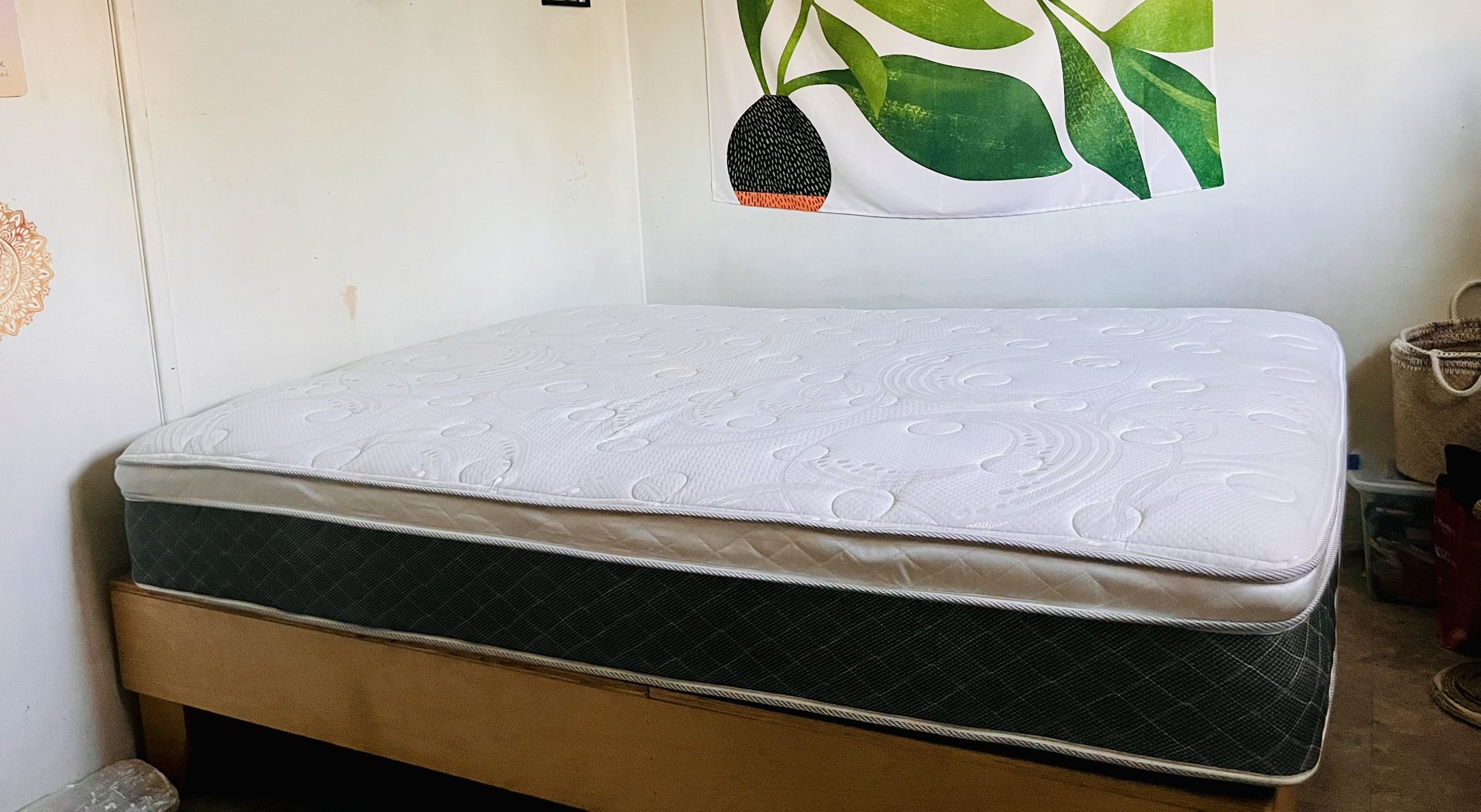 Queen size mattress in good condition Mattress only. Had a waterproof prnotector over it all of the time. One bigger stain and one small one. Otherwise clean. Non smoking non pet home. Cozy too!! Pick up only in bell gardens
