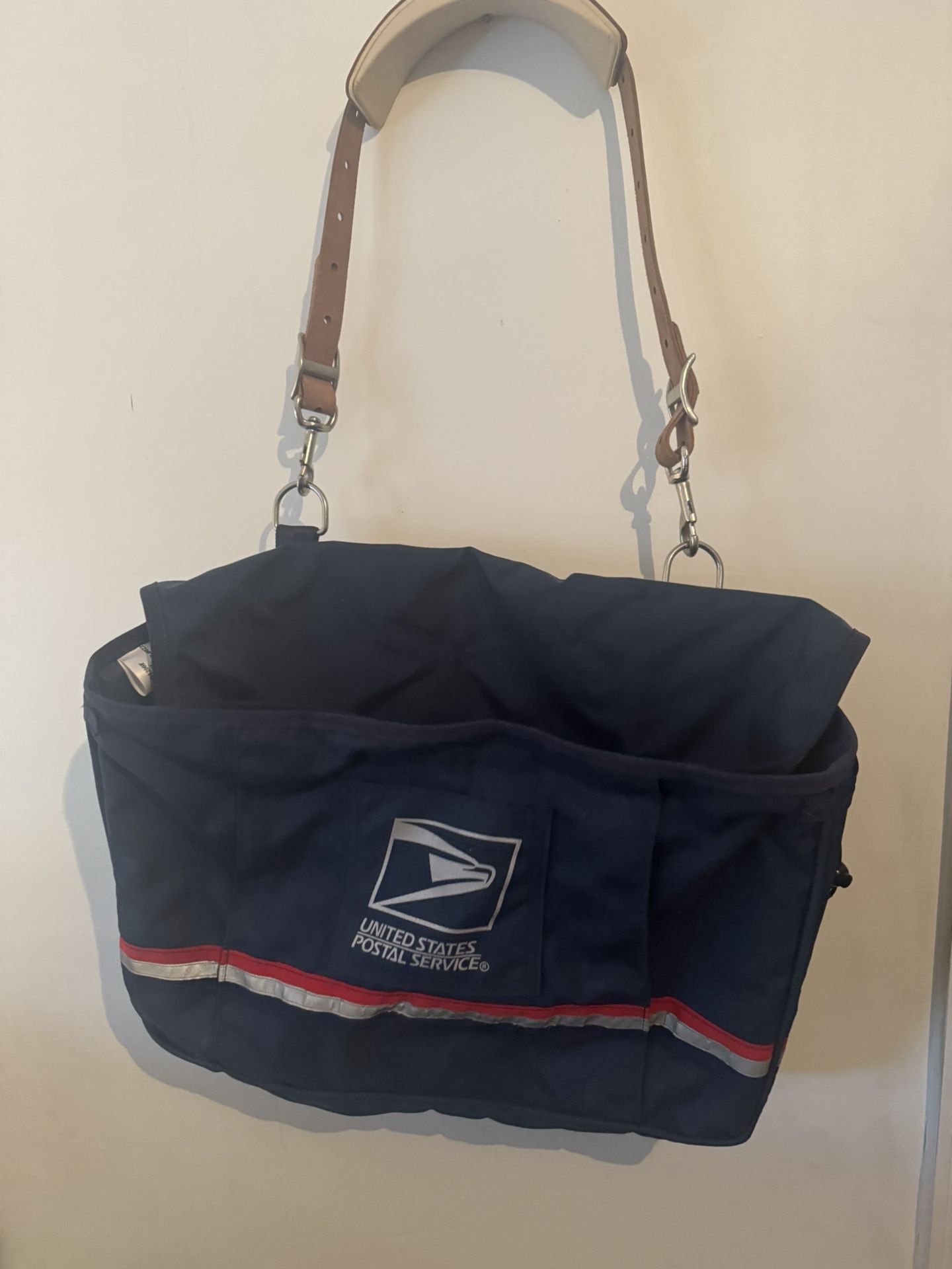 Genuine brand new USPS carrier satchel with a brand new leather strap also genuine USPS Never used in perfect condition Model number D1200F Most recent model produced by the United States Postal Service for their mail carriers PRICE NEGOTIABLE