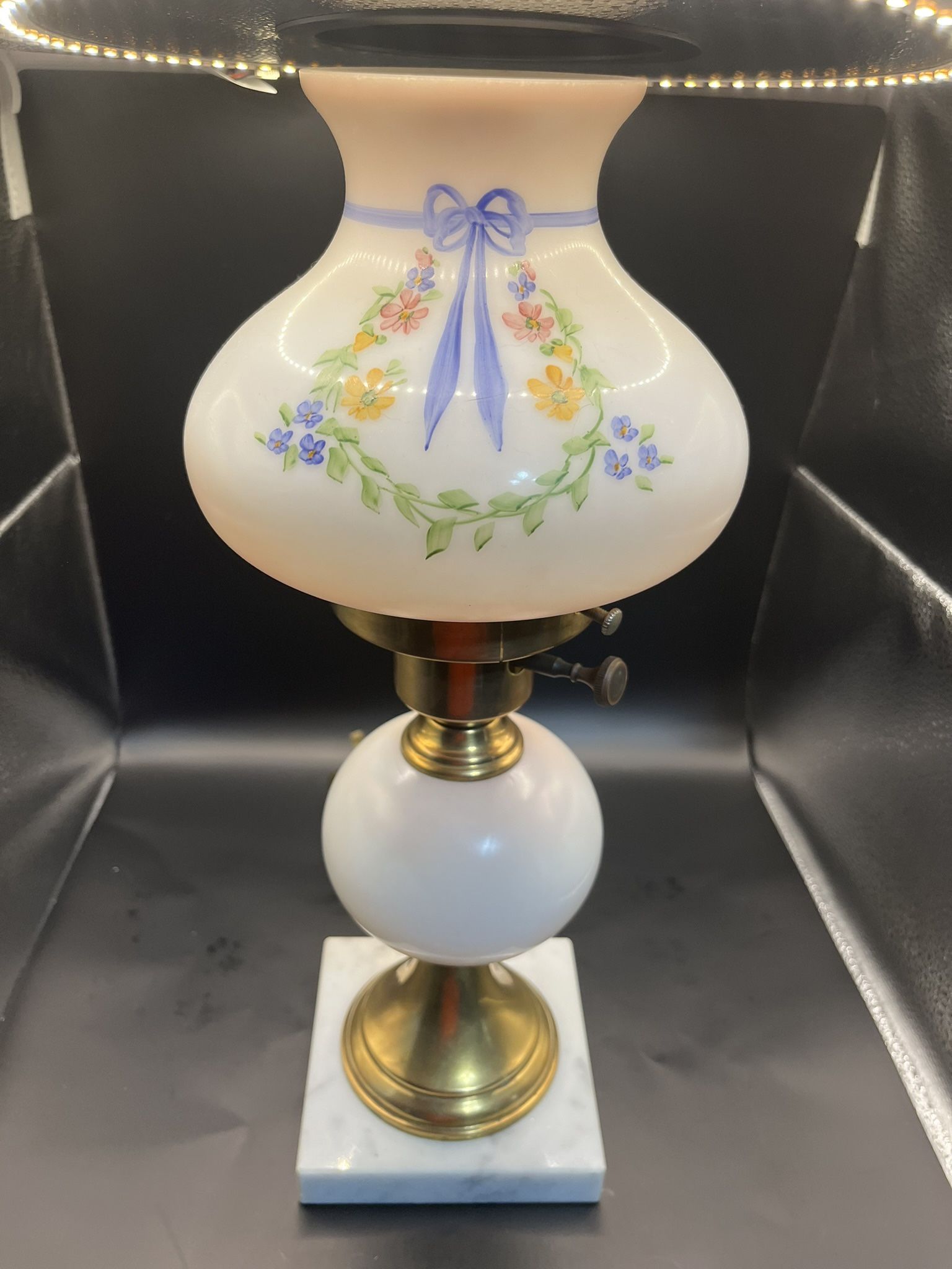 Vintage Boudoir Lamps On Marble Bases. Hand Painted.