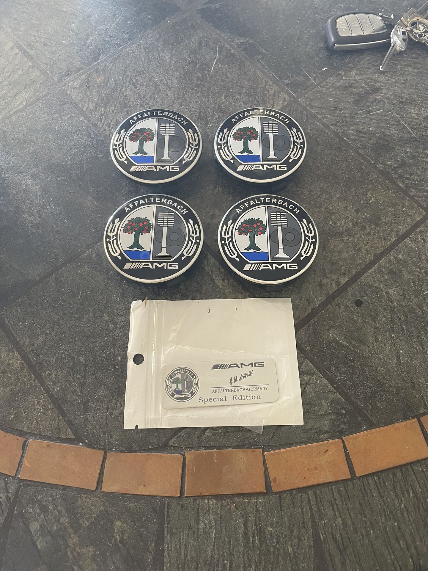 AMG COLORIZED AFFALTERBACH CENTER RIM CAPS 4PACK. I think they’re new? I’ll throw in special edition badge with them!