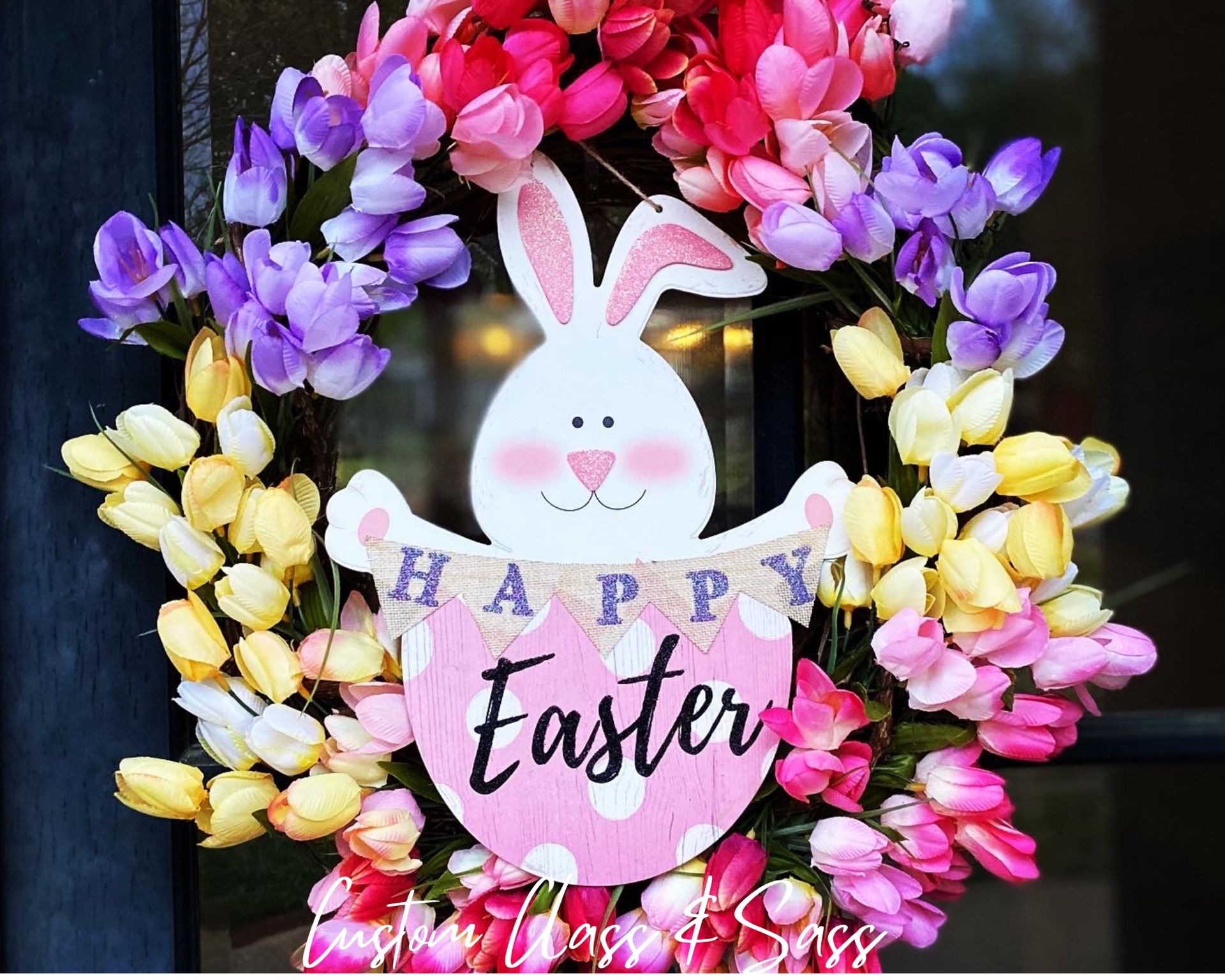 $65/ Local Pickup OR $74/ Shipped Due to OfferUp Fees. Super Cute Handmade Tulip Spring Easter Wreath Ready to Adorn Your Front Door! • 18” Grapevine Wreath • Full of Artificial Tulip Flowers • Bunny “Happy Easter” Sign PS:: You Can Easily Remove or Change The Sign Out To Use The Wreath All Spring & Summer! *Trusted Seller on Multiple Selling Platforms. If you have any questions please don’t hesitate to message me. Ships Same/Next Business Day! #Easter #Spring #Wreath #Decor #Tulip #Handmade #Shabby #Farmhouse #Bunny #Rabbit #Pastel #Flower