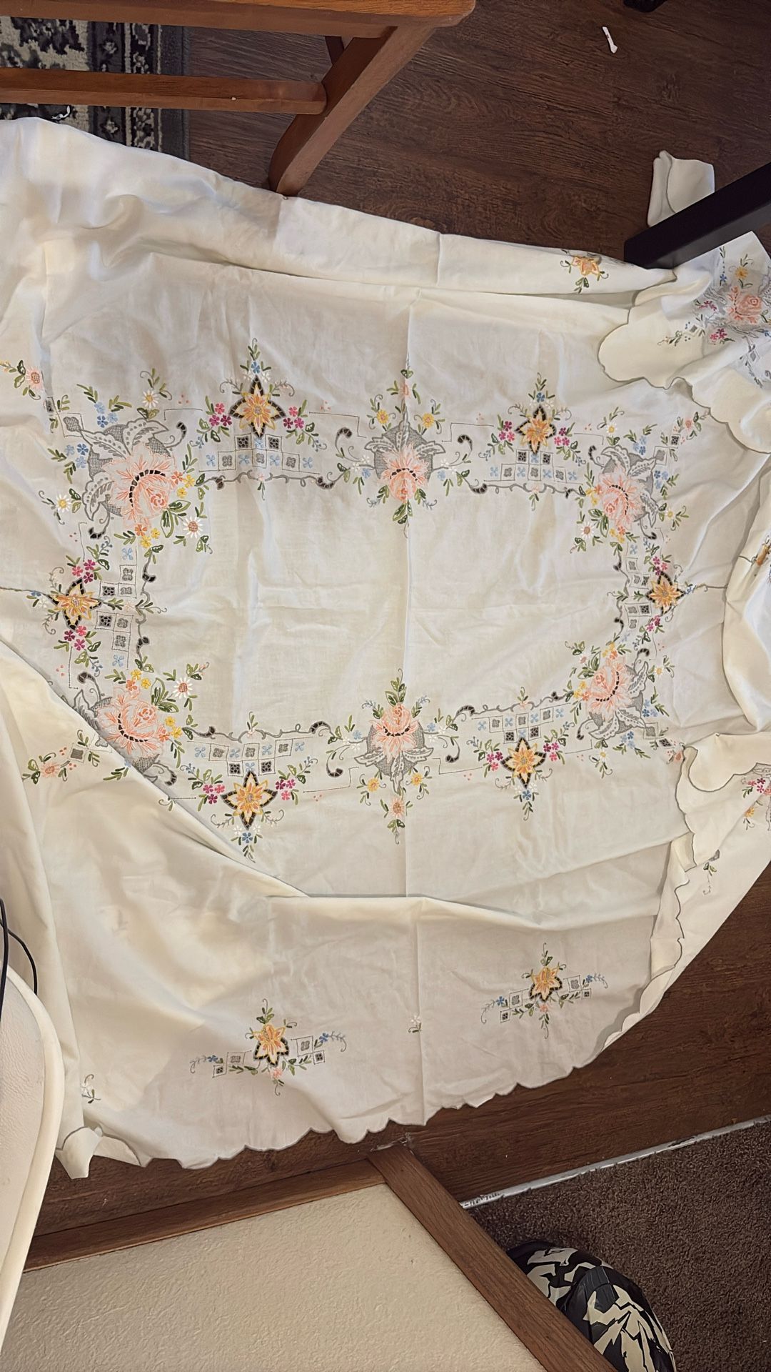 Vintage Hand Cross Stitched Tablecloth & Napkins