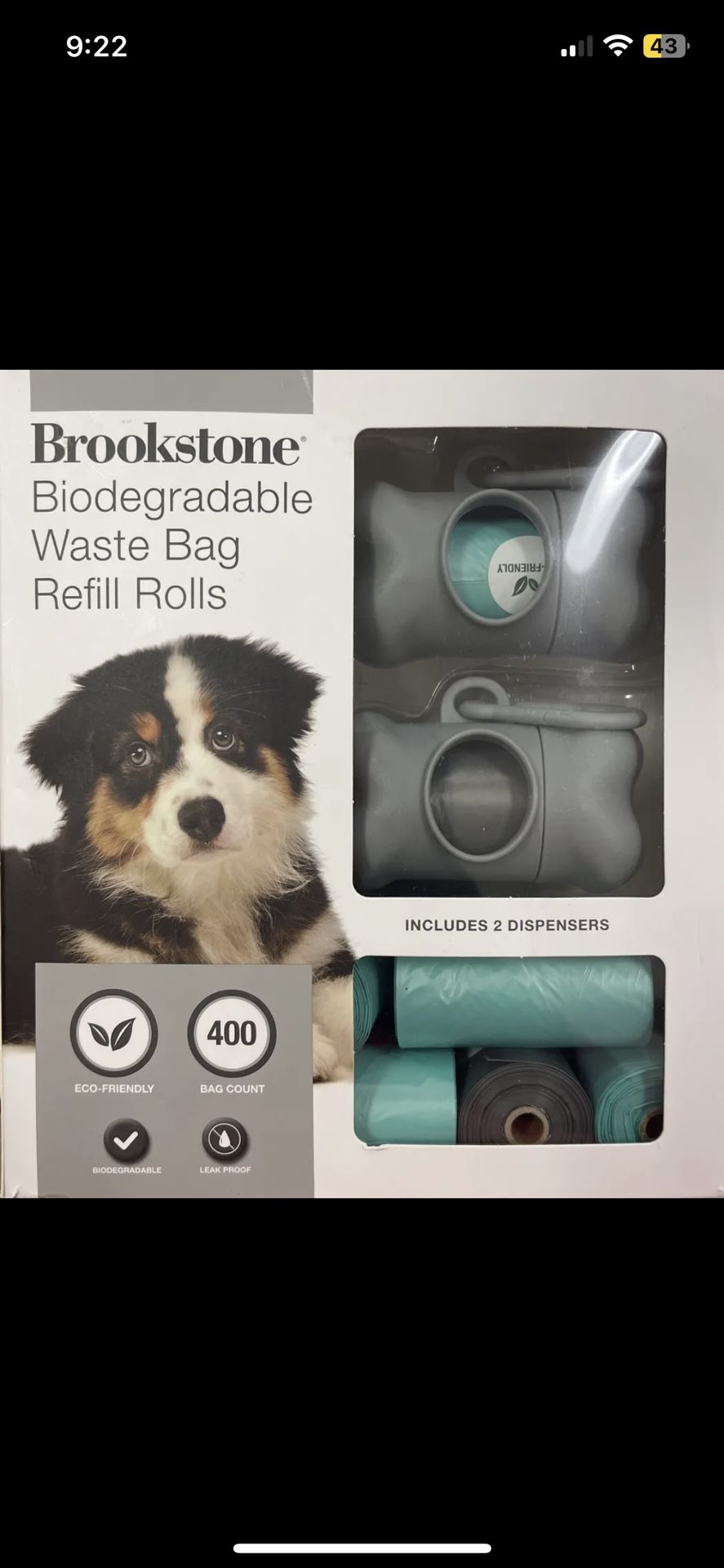 Brookstone Biodegradable Dog Poop Waste Bag Leak Proof Refill Rolls Silver Color