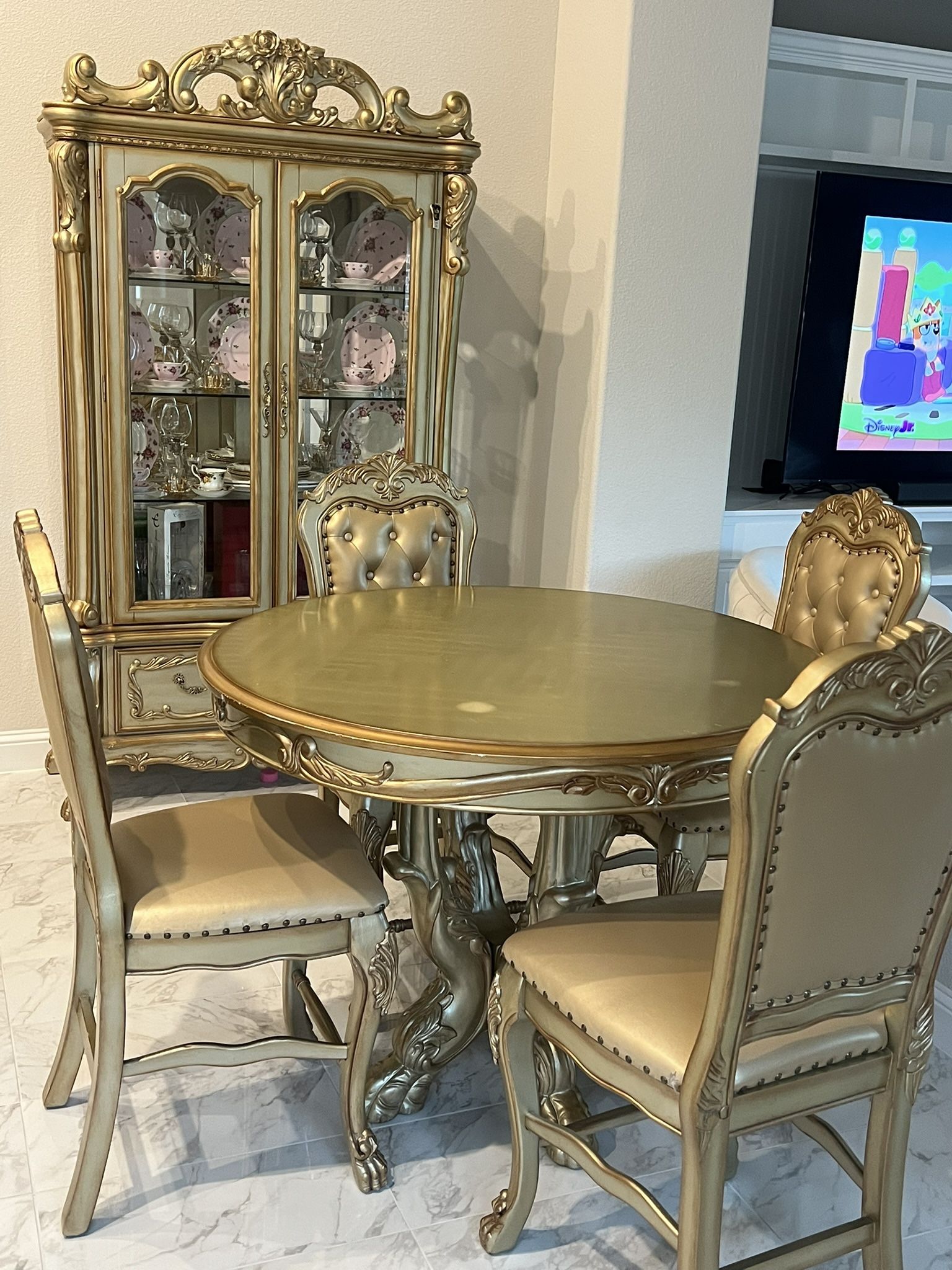 Beautiful Dinning table with 4 chairs and the China cabinet all for $1,250 Everything is in good condition Pickup 76036 Crowley Hablo español
