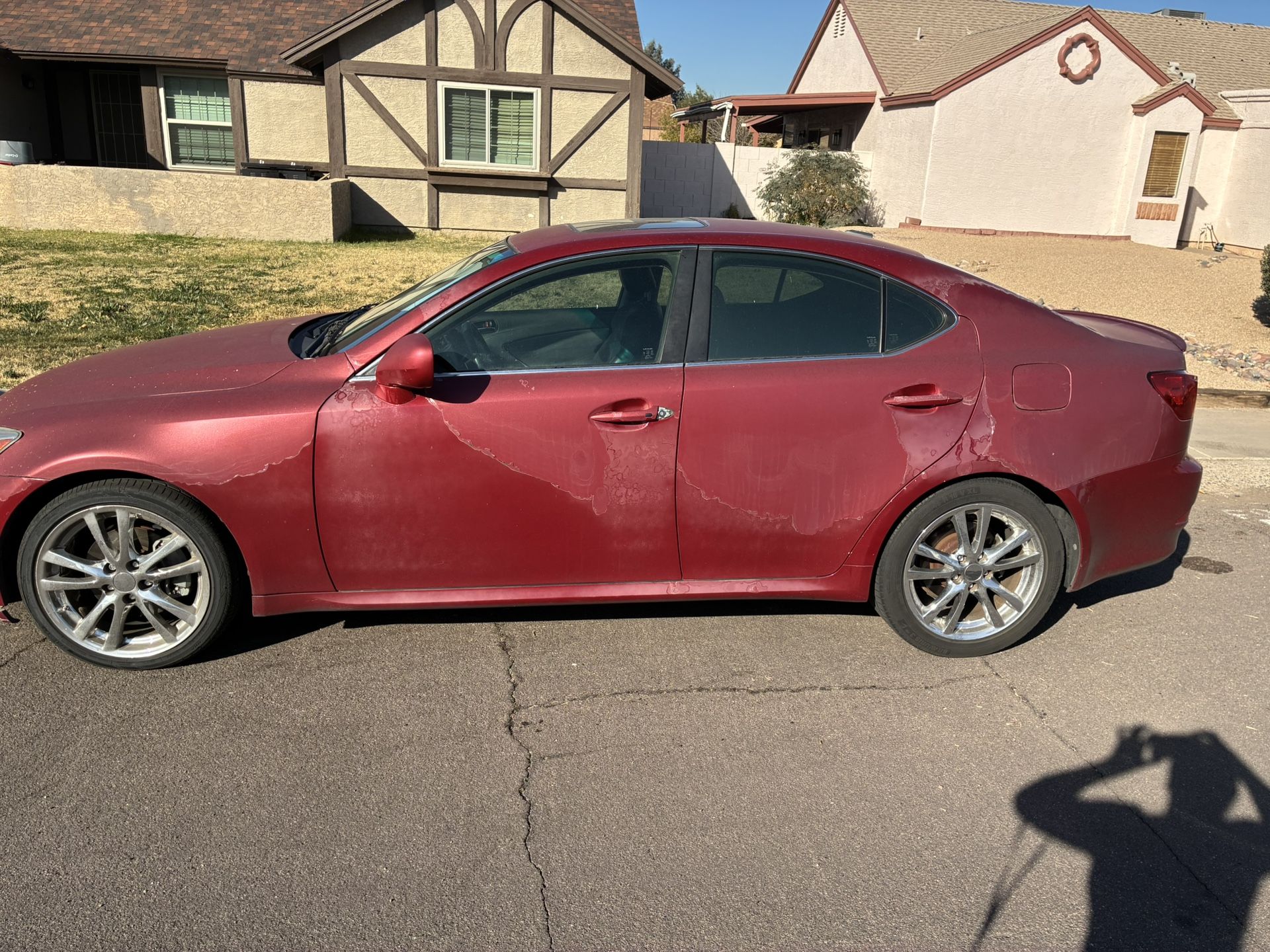 Selling my 2008 Lexus IS250. Clean Arizona title in hand. I've owned the car since 2016 and it has been a dependable daily driver. I’m looking to buy a SUV that’s why I’m selling. Car is not in perfect condition but will run for a longer time!! Details: • 163,000 miles • Automatic transmission • Clean title • Located in Glendale, AZ • Drives smooth Condition: • Exterior paint is faded from sun exposure • Hood has paint chips • Windshield is cracked • Interior has normal wear and tear for age • Check engine light is on (likely a sensor, not diagnosed) •AC and heater works • The left side-view mirror is broken. Maybe need’s a nail or something. It moves back and forth doesn’t stay in place. Car is not in perfect condition. The car runs and drives well despite cosmetic flaws. This would make a good commuter, first car, or project for someone who doesn't mind cosmetic work. Asking $5,500 OBO due to cosmetic issues. Cash only. No trades. Serious buyers only. (contact info removed) Tim Ask anything