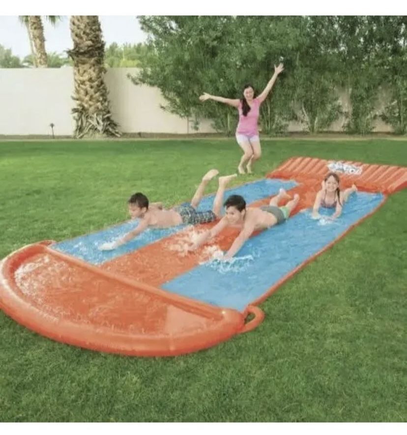 New H2OGO! 52200E Triple Water Slide 18 Ft + Drench Pool & Built In Speed Ramp Condition is Brand New, the box has some damages on the edges, please see pictures.