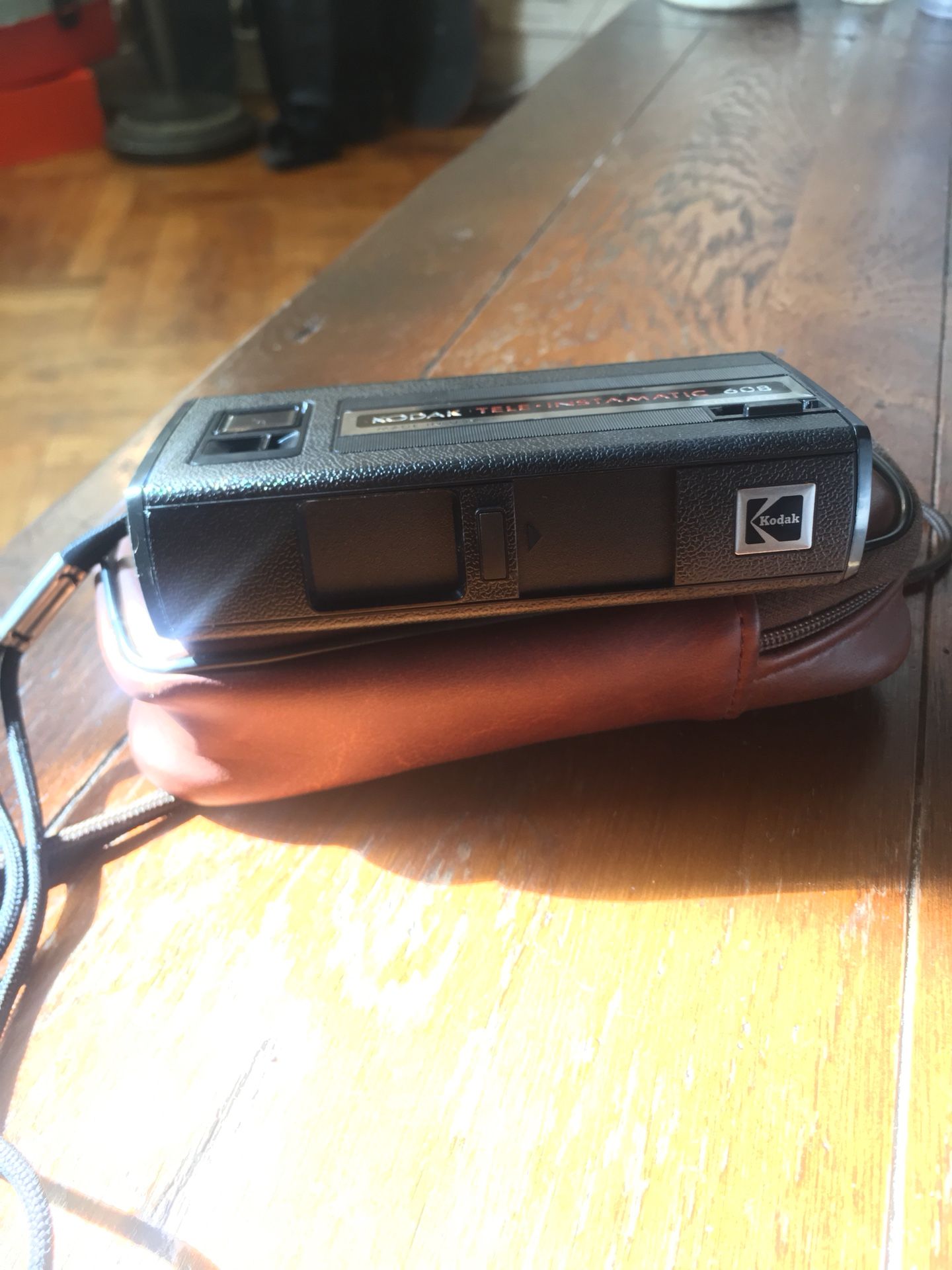 Vintage KODAK Tele-Instamatic 608 Collector Camera - 110 Film - Collectible produced between : 1975 – 1979 lens : 25mm and 43mm, f/11 Meniscus film type : 110 Cartridge picture size : 13 × 17 mm Film can be found for purchase on amazon