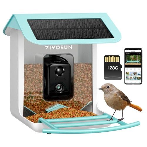 VIVOSUN 2.5L Smart Bird Feeder with Camera, 1080P HD WiFi Camera, Free AI Identify 11000+ Bird Species,128G TF Card, Auto Capture Bird Videos