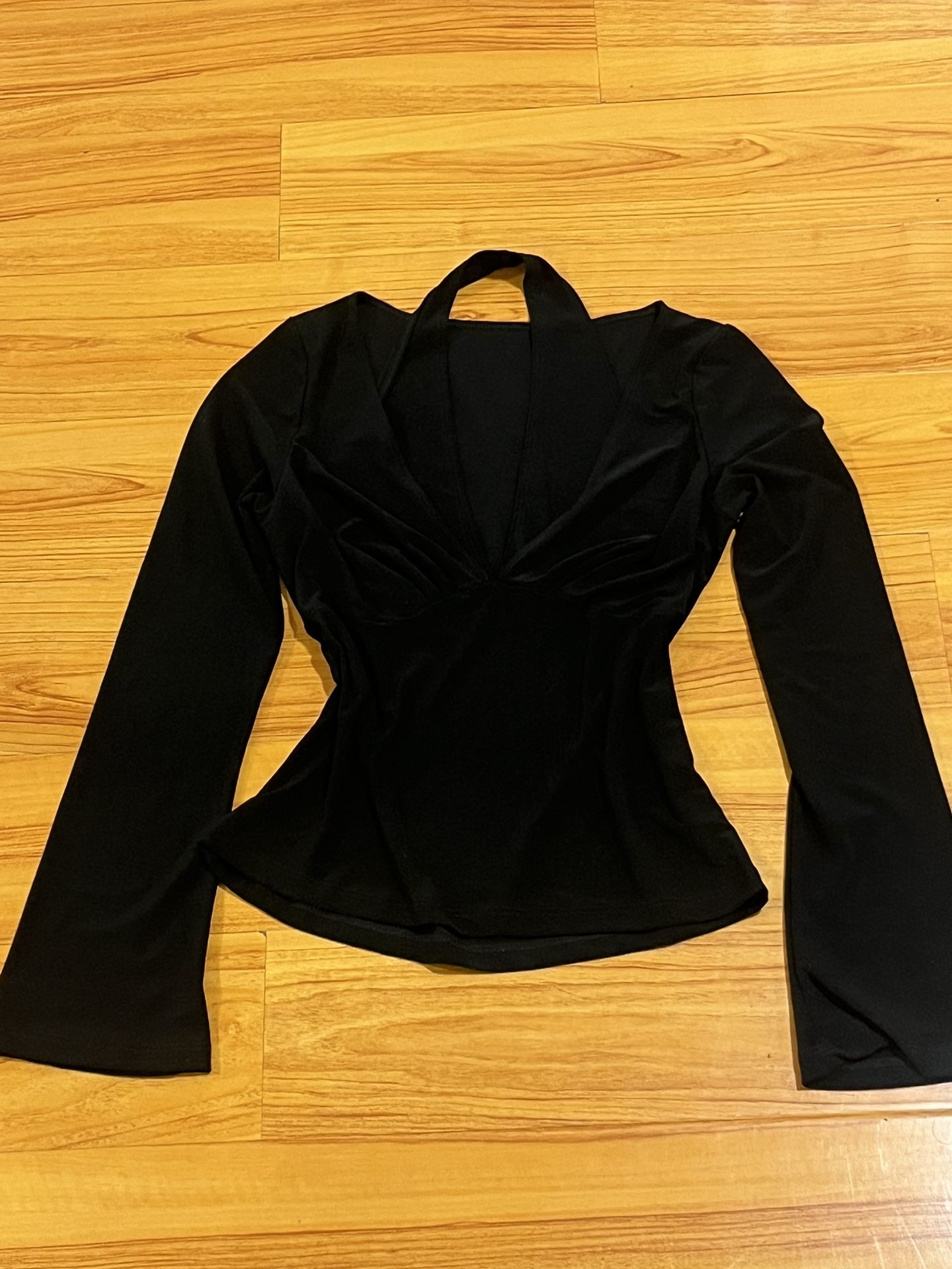 Size medium Long sleeve Black Has an inside halter top feature Soft and breathable