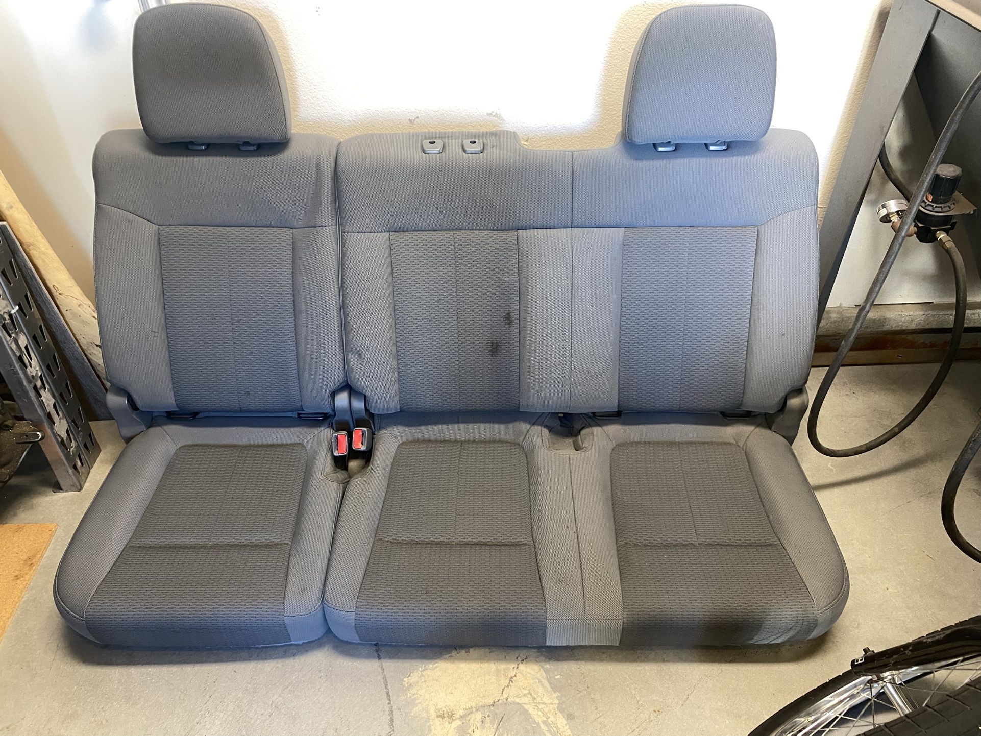 Good condition, I bought this for a truck and never used it. For a crew cab f150. It’s out of a 2013. It will fit 2009 to 2014. Has mounts does NOT have bolts. Does NOT have seat belts. What you see is what it is. $120