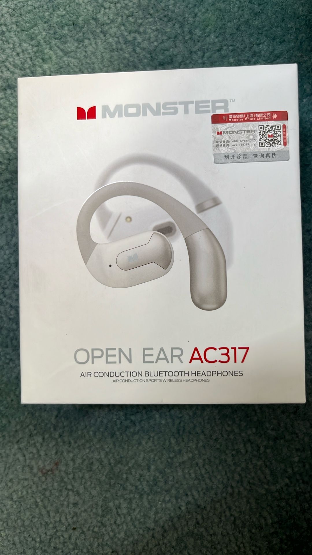 Silver/white Monster Open Ear AC317 Headphones, Wireless Headphones with Stereo Sound, Bluetooth 5.4, 24H