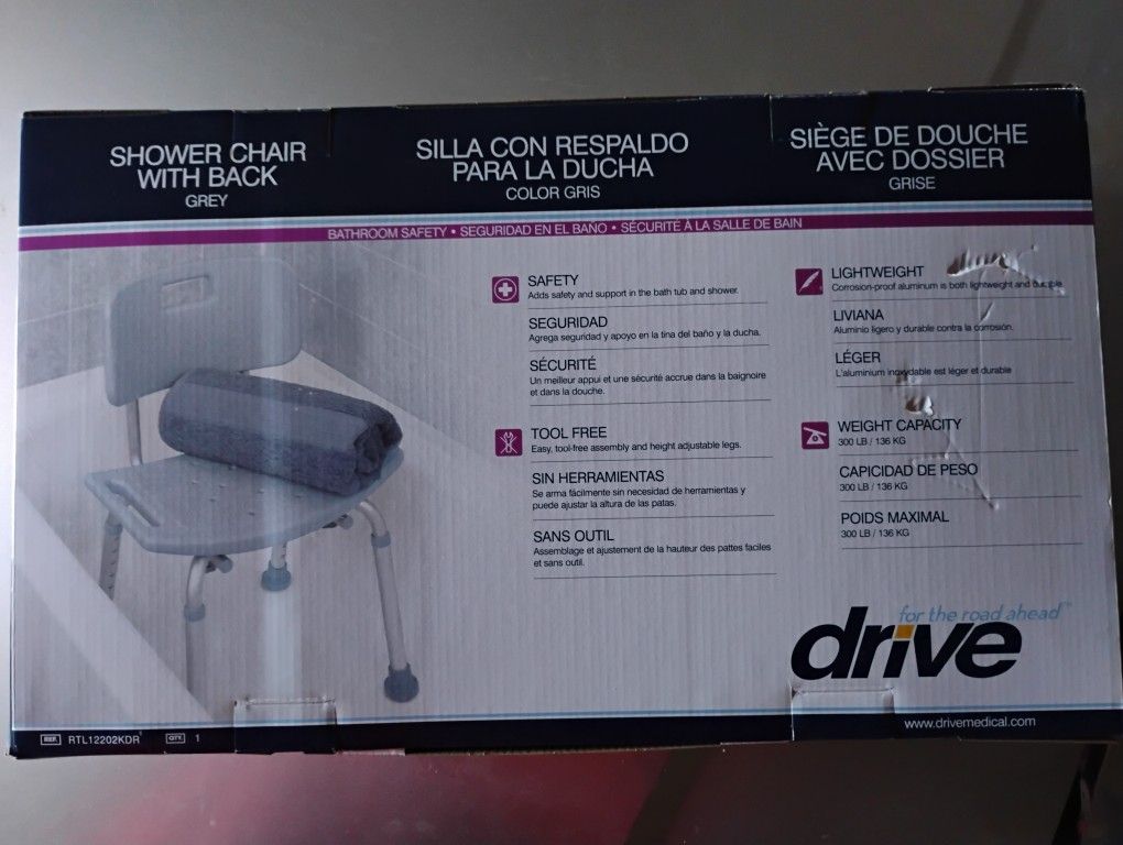 2 New Gray Shower Chairs with Backs, Was $57.75each Now $40 each