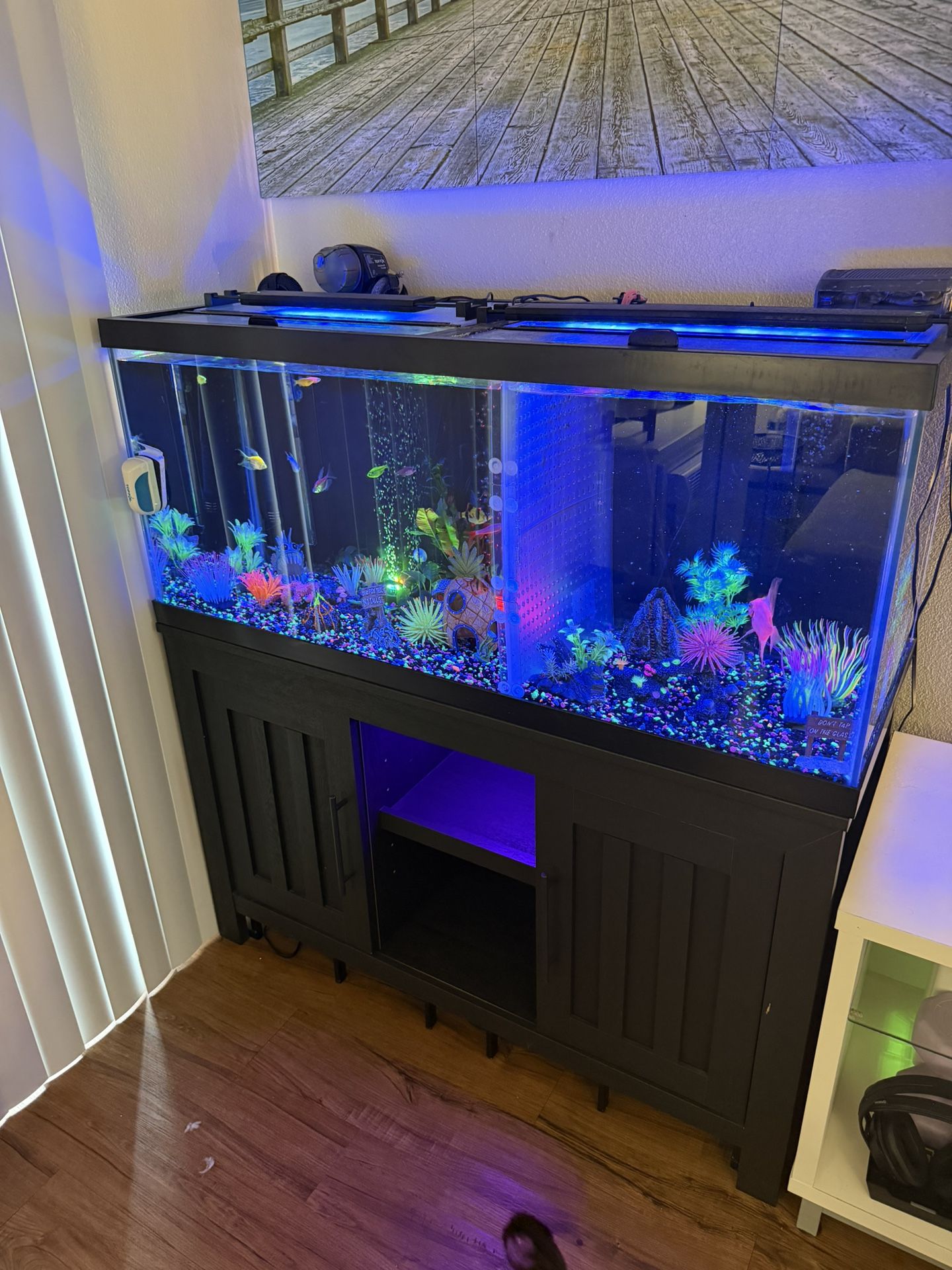 Selling my 75 gallon fish tank need to downsize due to moving situation trying to sell only the fish tank and stand together. the stand was 230$ the tank was 200 new