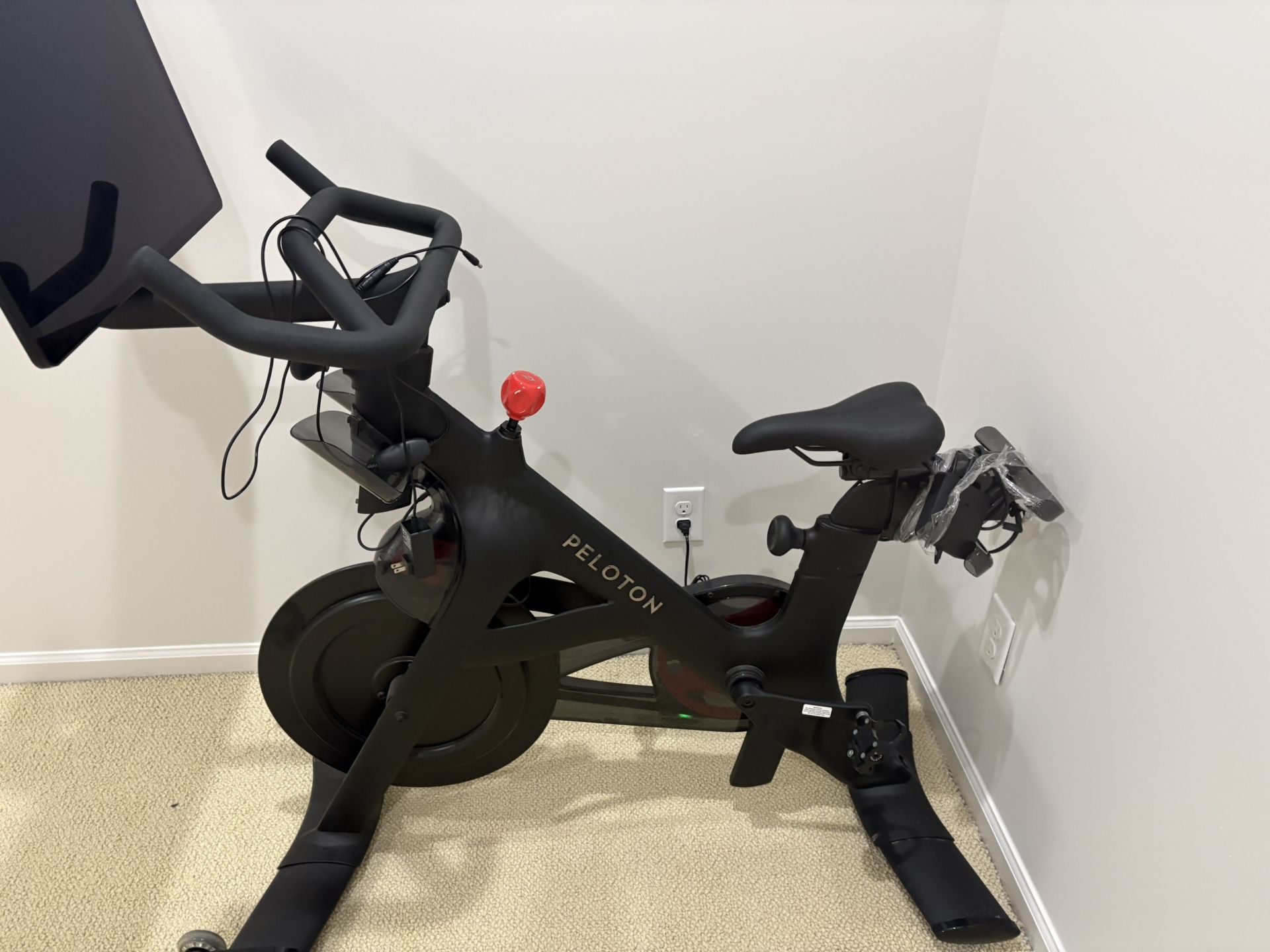 Peloton is basically brand new only been used three times when I ordered it I had to move and then I had to move again, so I never had the opportunity to use it. It’s an excellent condition. It also will come with a pair of shoes that I believe are nine 9 1/2.