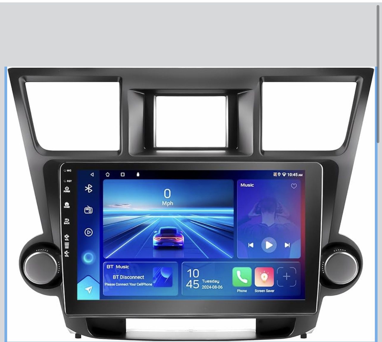 2+64G Android 13 Double Din Car Stereo for Toyota Highlander 2009-2014 with 10.1 Inch Touchscreen Radio Built-in Wireless Carplay/Android Auto/GPS/Bluetooth/FM/AUX-in/SWC/Backup Camera Top highlights Model Name Inefala 2+64G Android 13 Vehicle Service Type Car Screen Size 10.1 Inches Special Feature 1024*600 Resolution, 1080P Video Playback, EQ Setting, 28 Desktop Themes, Hands-free Bluetooth, Touchscreen, FM/RDS Radio, Support Reverse Input, Steering Wheel Learning, Wireless/Wired CarPlay & Android Auto & Mirror Link, Siri/Goo-gle Voice Assistant, GPS Navigation, WiFi/Hotspot Connection1024*600 Resolution, 1080P Video Playback, EQ Setting, 28 Desktop Themes, Hands-free Bluetooth, Touchscreen, FM/R… Connectivity Technology Bluetooth, USB, Wi-Fi, Wireless Applicable Models & Years: This upgraded replacement dash kit is for for toyota highlander 2008 2009 2010 2011 2012 2013. Cable does NOT support the original car with the navigation and large color screen or JBL amplifier (Purchase If Needed). Left or right knobs with dual flash warnings are not supported, plus the two knobs in this kit are for decorative purposes only. Please check if the power cable port on the detail page matches your original car 2+64G Android Blue Main UI Car Radio: 10.1-inch for toyota highlander touch screen radio with 1024 x 600 screen resolution, support 1080P video playback. Specially designed blue main UI, more cool and technological sense. 2.5D high definition touch screen with 28 desktop themes, easy to operate. The device offers adjustable EQ sound effects, such as pop, rock, and jazz, for a more enhanced listening experience Wireless CarPlay & Android Auto: Built-in wireless and wired CarPlay and Android Auto (For Samsung, some cannot use Android Auto and Mirror Link; For Huawei, some cannot use Android Auto). For toyota highlander carplay radio able to realize voice control and access to cell phone function via WiFi hotspot or the phone's original USB cable, including music, navigation, calls, messages and more Mirror Link for lOS/Android: You can synchronize your cell phone's content, such as videos and navigation, via the phone's original USB cable for toyota highlander car stereo larger screen. Compatible with iOS phones support one-way control, Android phones support two-way control Offline/Online GPS & WiFi Connection: For toyota highlander accessories display, you can download apps such as YouTube and TikTok to enhance your car's audio-visual entertainment experience. It also offers free offline maps like Waze and online maps to help you navigate unfamiliar places. The split-screen function allows you to display multiple functions simultaneously, such as the map and FM radio Built-in Bluetooth & FM/RDS Radio: For toyota highlander bluetooth stereo built-in Bluetooth 4.2 can be realized to play music and hands-free calls, phonebook download, etc. With FM/RDS radio, you can listen to music, get real-time weather forecasts, traffic updates, and news while driving. You can save up to 18 of your favourite radio stations AHD Backup Camera & Steering Learn: The waterproof AHD camera is equipped to display the rear camera screen automatically when the reverse gear is engaged, providing a clear image day or night. For toyota highlander android auto radio can be controlled using the steering wheel, allowing for quick reactions, changes and play the radio You can check the goods before leaving, once you leave I am not responsible for anything anymore. i’m