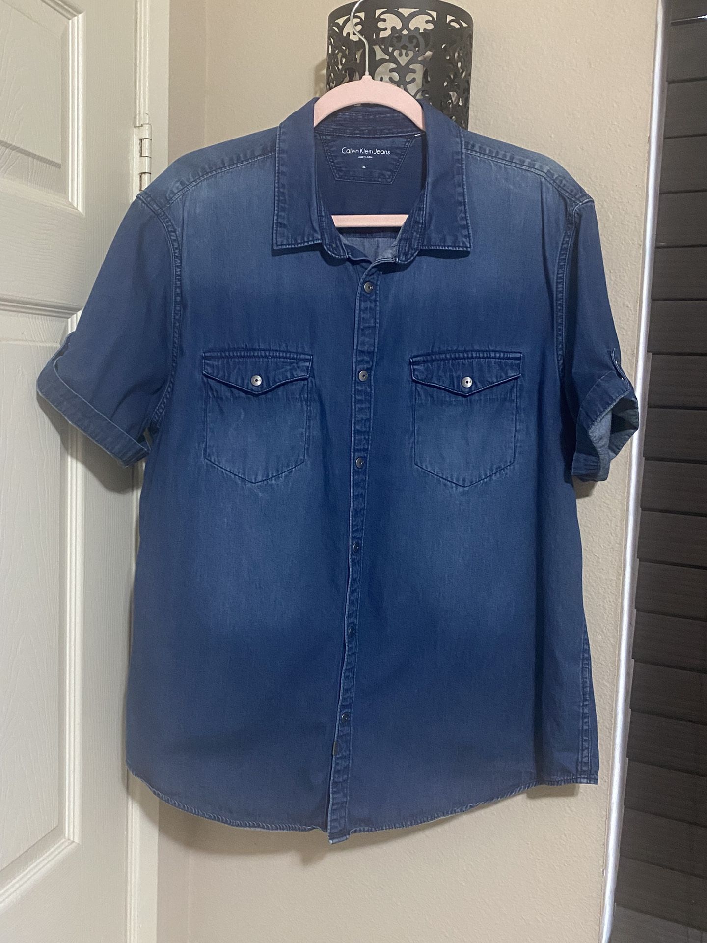 Calvin Klein Blue Jean Button Up Shirt Size XL