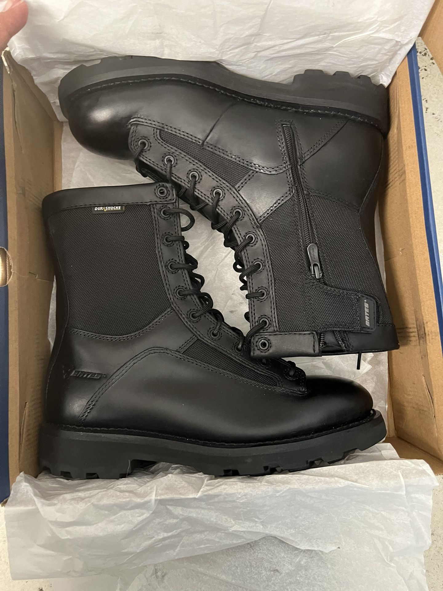 Hello I’m selling my Bates boots. Boots are brand new. Never worn them. Boots are like new and are somewhat shine/wax. Men’s size 10 High top with zipper Non slip boots Great boots for Police Academy, fire department academy, or for any profession job, or casual. Pick up in Reseda only. Any questions feel free to message me.