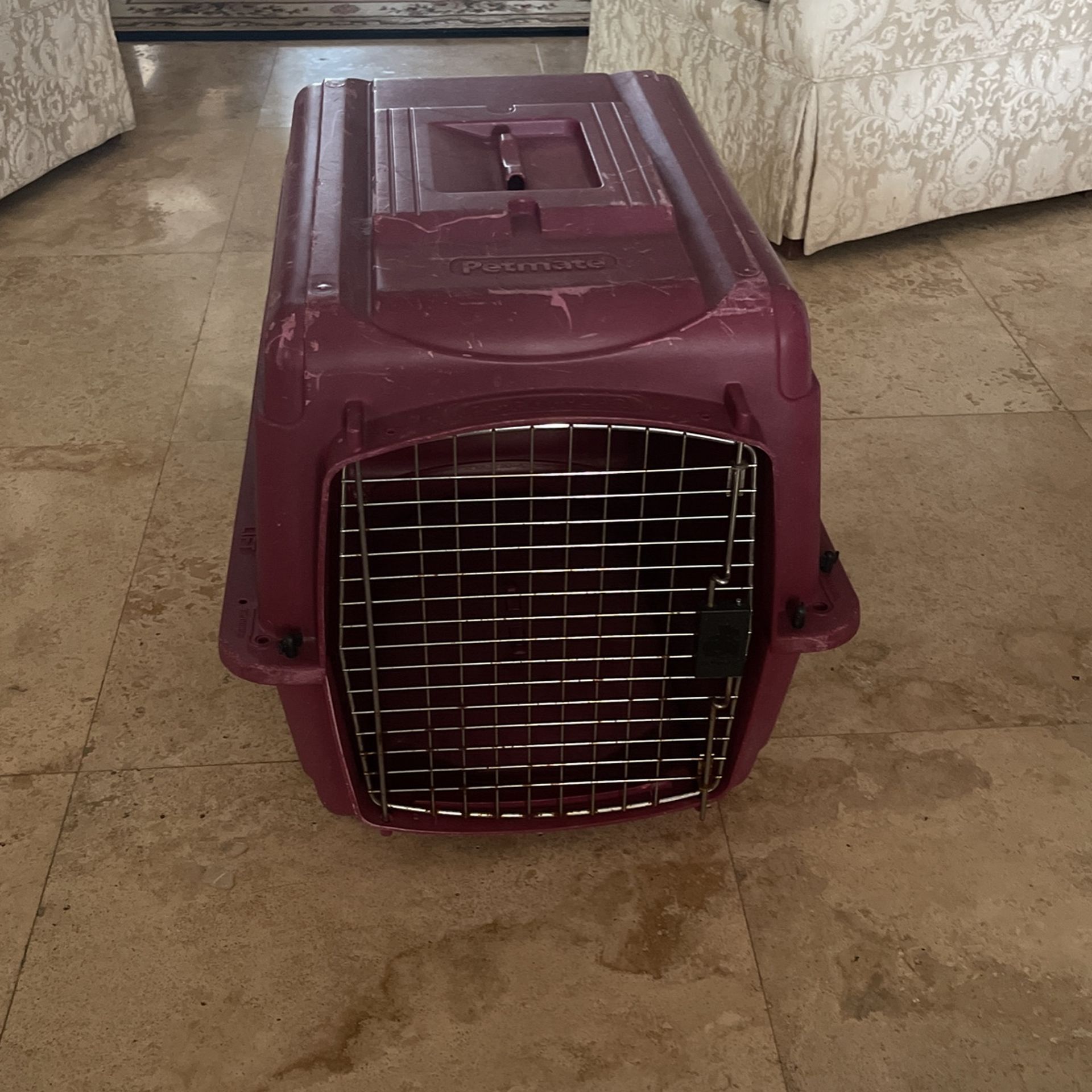 PetMate dog crate. Ideal for medium to large dogs or other pets. Measures 20” h x 20” w x 28” d. Missing handle but in good working conditions.