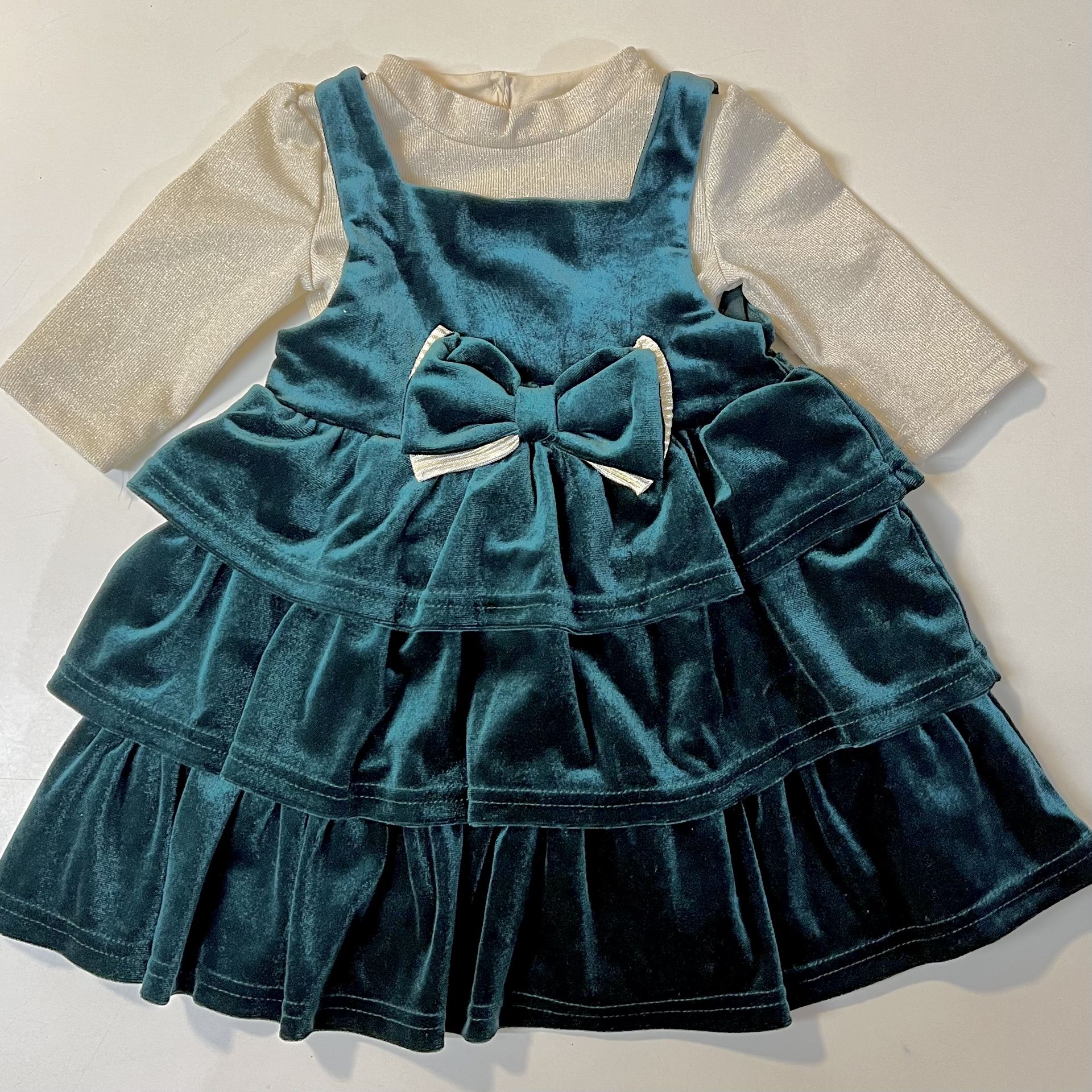 BLUEBERI BOULEVARD Metallic Gold Top Velvet Green Baby Girl Dress Set kids Size 12M