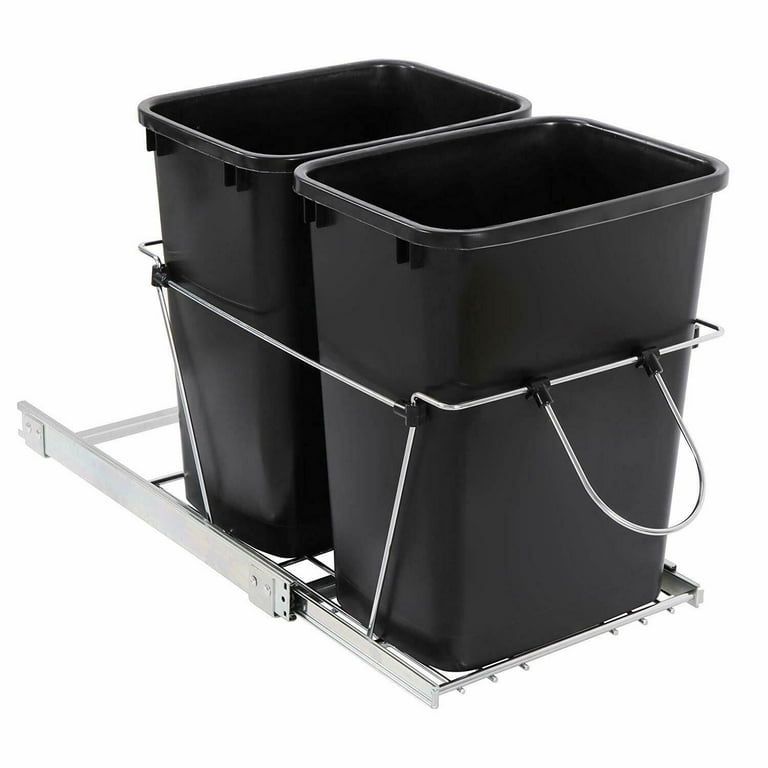 ZENY Sliding Pull Out Double Trash Bins 35 Quart Kitchen Cabinet Black