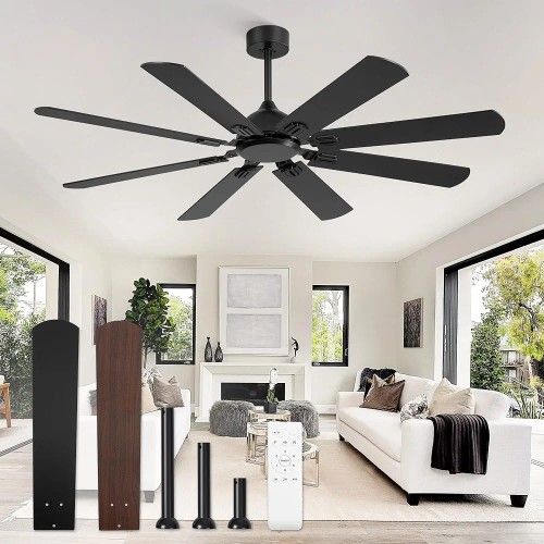 62 Inch Ceiling Fans No Light with Remote, Modern Ceiling Fan Without Light, Dual Finish 8 Blades, Reversible Quiet DC Motor, 6 Speed, Large Ceiling F
