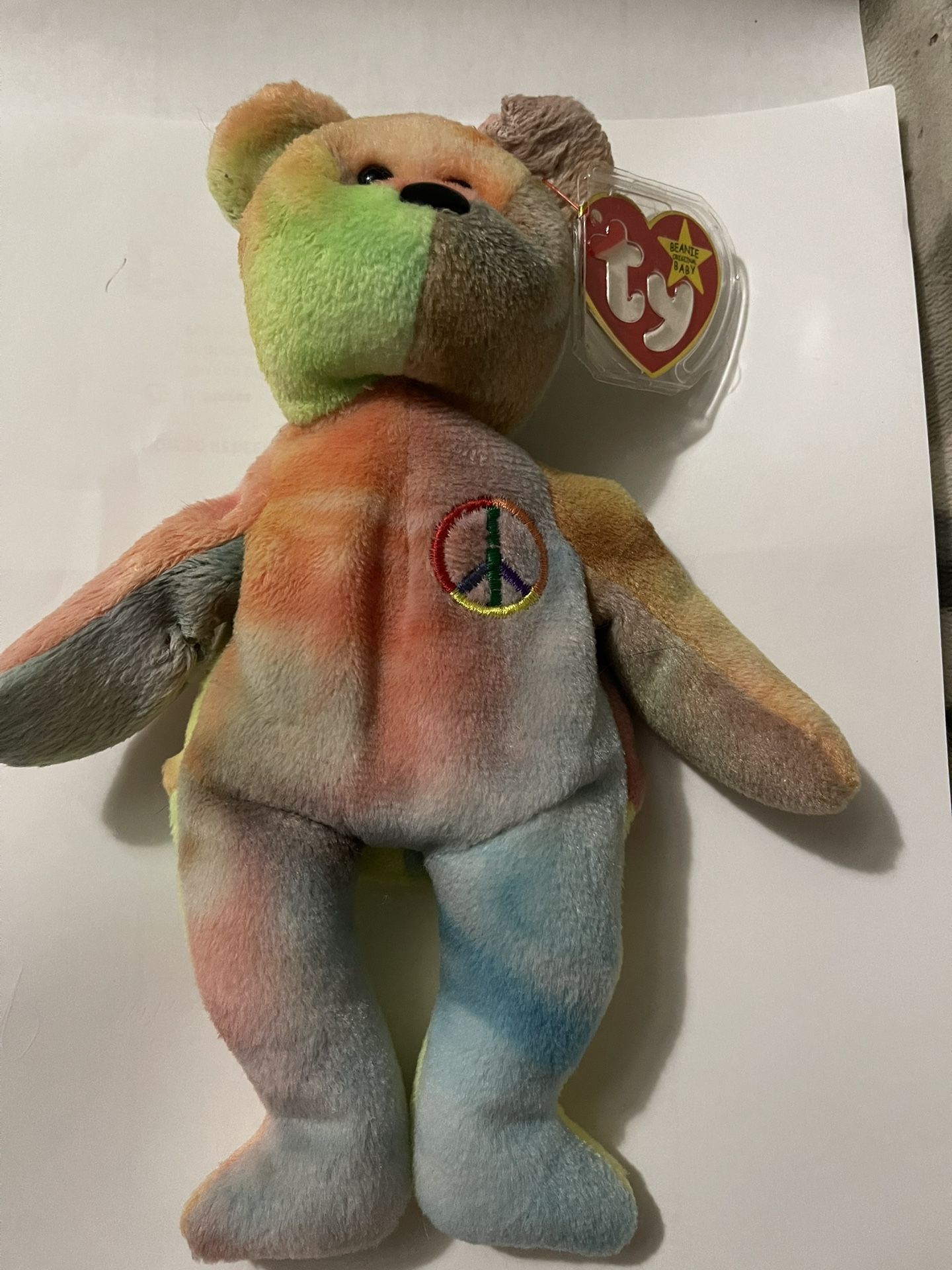 TY BEANIE BABY PEACE BEAR TYE DYE RETIRED EXCELLENT CONDITION COLLECTABLE STORED IN BOX PET FREE SMOKE FREE Tons of other beanie babies available $30 40th ave and bell rd THANK YOU FOR CHECKING OUT MY PAGE. Lots of jewelry,collectibles, Victoria secrets. Deals on bulk purchases.